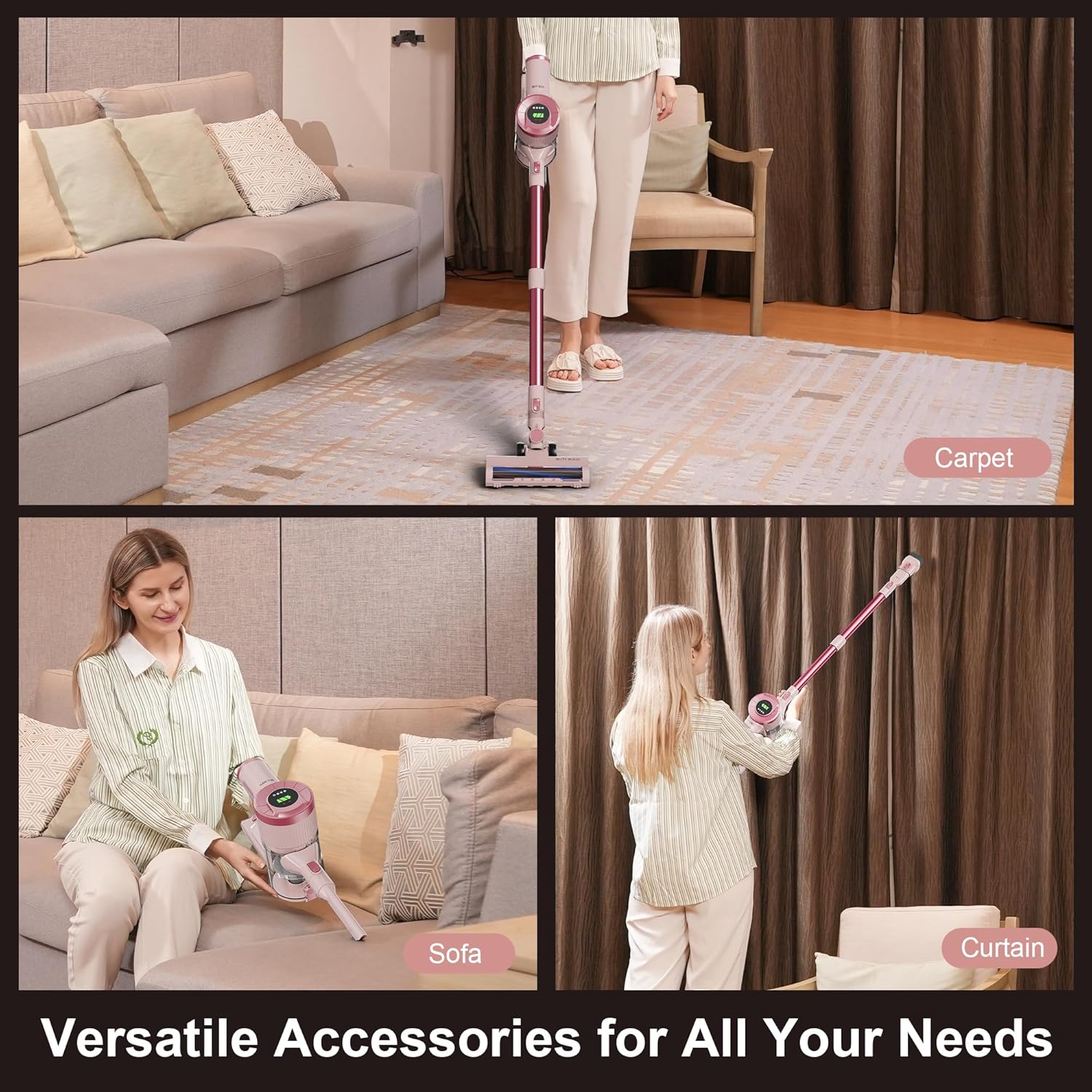🌈【30KPa High-Powered Suction with Low Noise】Designed for efficient cleaning, this cordless stick vacuum features a robust 150W motor that generates an impressive 30KPa suction power, effortlessly lifting dirt, debris, and even small particles like coffee beans and cat litter. Despite its power, the vacuum operates quietly, ensuring you can clean without disturbing your surroundings. Ideal for homes and apartments where noise reduction is a priority.