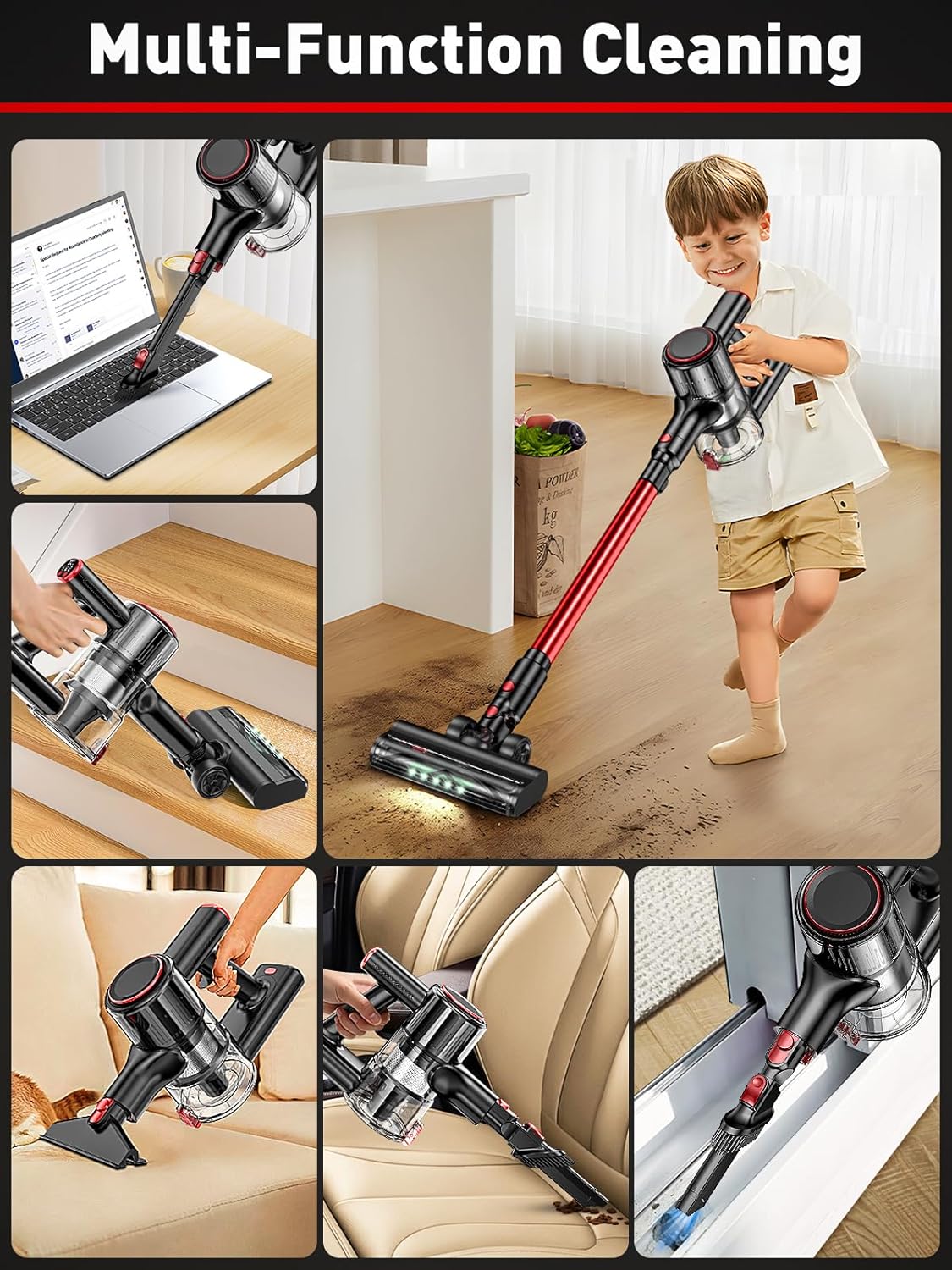 [Lightweight & 8-in-1 Versatility] Weighing only 3.2 lbs, this stick vacuum converts to a handheld unit in seconds. vacuum cleaners for home comes with multiple accessory(sofa brush/ 2-in-1 cervice tool.Use the crevice tool for window frames, the dusting brush for lampshades, or tackle your car interior with precision. Includes wall mount for compact storage in apartments or dorms.