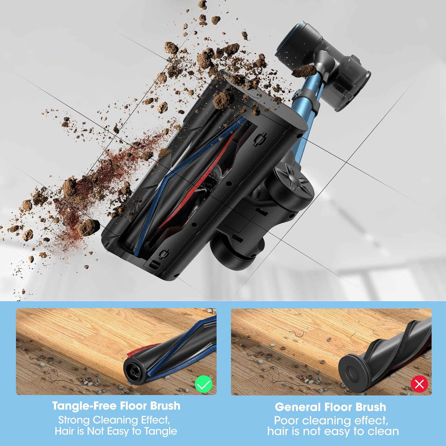 【180° Rotatable Brush & LED Headlights】 This Cordless Vacuum Flexible Floor Brush makes it easy to clean under furniture and in dead spots.The LED headlight illuminates every corner of your home to ensure you don’t miss any dirt and debris.