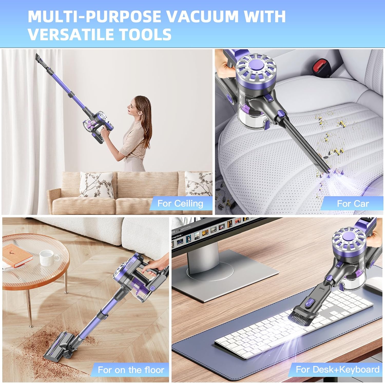【6 IN 1 MULTI-SCENE CONVERSION】: Our lightweight vacuum cleaner comes with a 2 in 1 brush, an extendable metal tube, and a crevice nozzle, allowing for flexible combinations of multiple usage modes to adapt to cleaning in any environment. It can help you clean stairs, sofas, tables, curtains, ceilings, and car seats. It makes a practical and thoughtful gift for moving, birthdays, or holidays, perfect for friends, family, loved ones, parents, and especially those with pets.