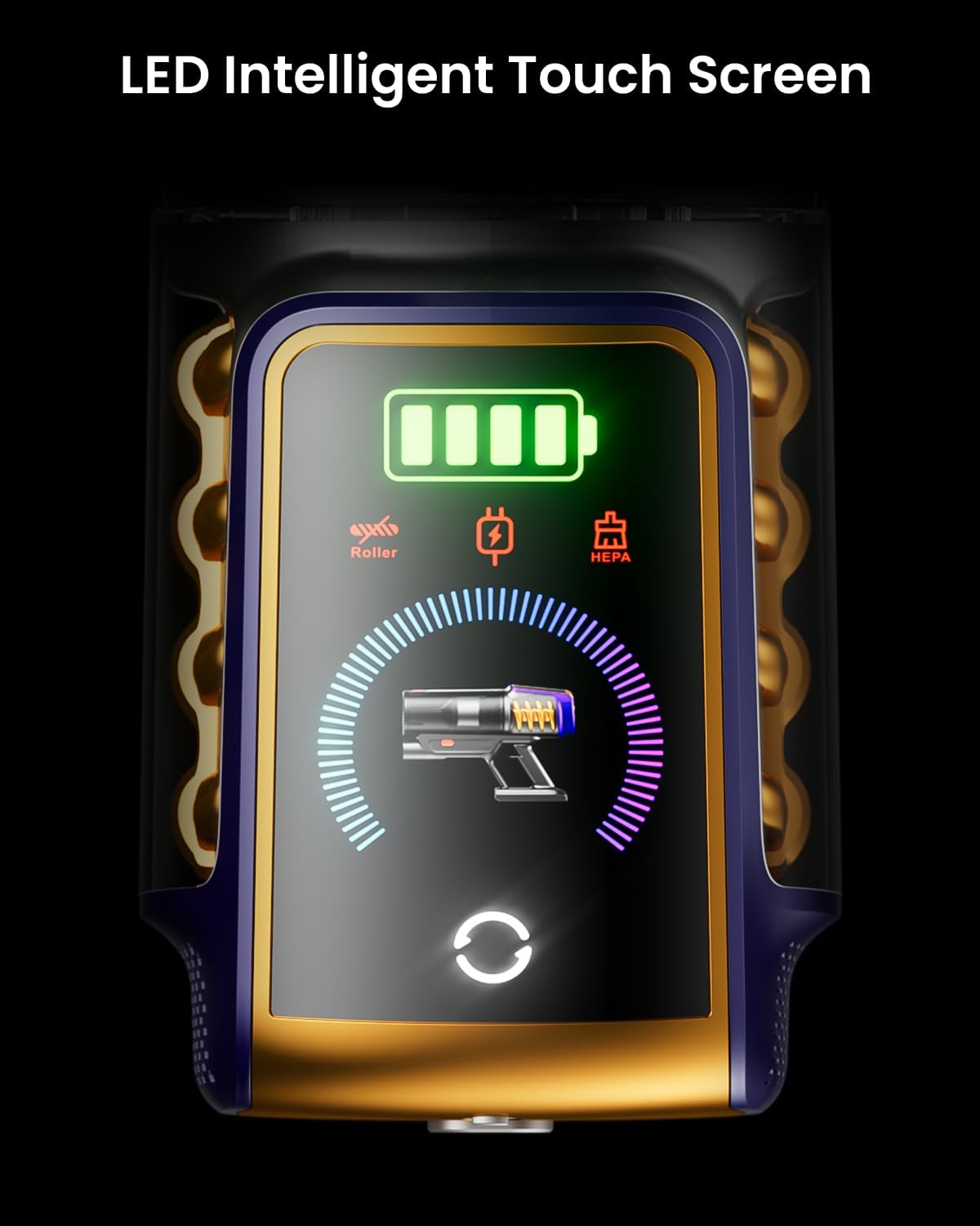 【High-Definition Color LED Display】 The vacuum’s responsive sensor system supports touchscreen operation to adjust suction power. Its clean, high-resolution design with oversized icons is exceptionally user-friendly for those with impaired vision and older users. The smart panel displays remaining battery life in real time, helping you plan cleaning schedules efficiently. Should any issues arise, alerts will promptly notify you to perform vacuum maintenance. Experience the convenience and enjoyment of smart cleaning!