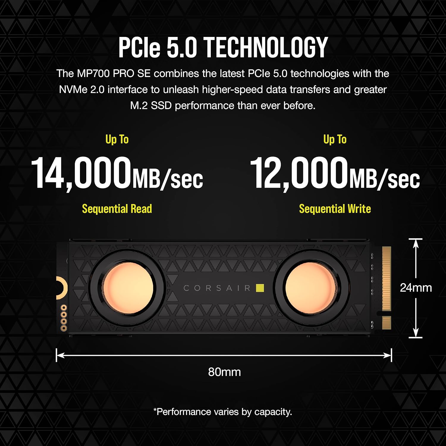 Experience the incredible performance of next-gen PCIe 5.0 storage in your system, with up to 14,000MB/sec sequential read and 12,000MB/sec sequential write speeds for unprecedented boot, load, and save times. The high-bandwidth NVMe 2.0 interface and the latest high-density 3D TLC NAND flash memory offer outstanding performance and longevity. Slot the MP700 PRO directly into your motherboard thanks to its M.2 2280 form-factor, with the pre-assembled Hydro X Series water block supporting incredible cooling options for throttle-free performance. Microsoft DirectStorage enables unprecedented load times when playing compatible games. With endurance up to 3,000TB Written and a comprehensive five-year warranty, the MP700 PRO SE delivers cutting-edge storage performance for years to come.