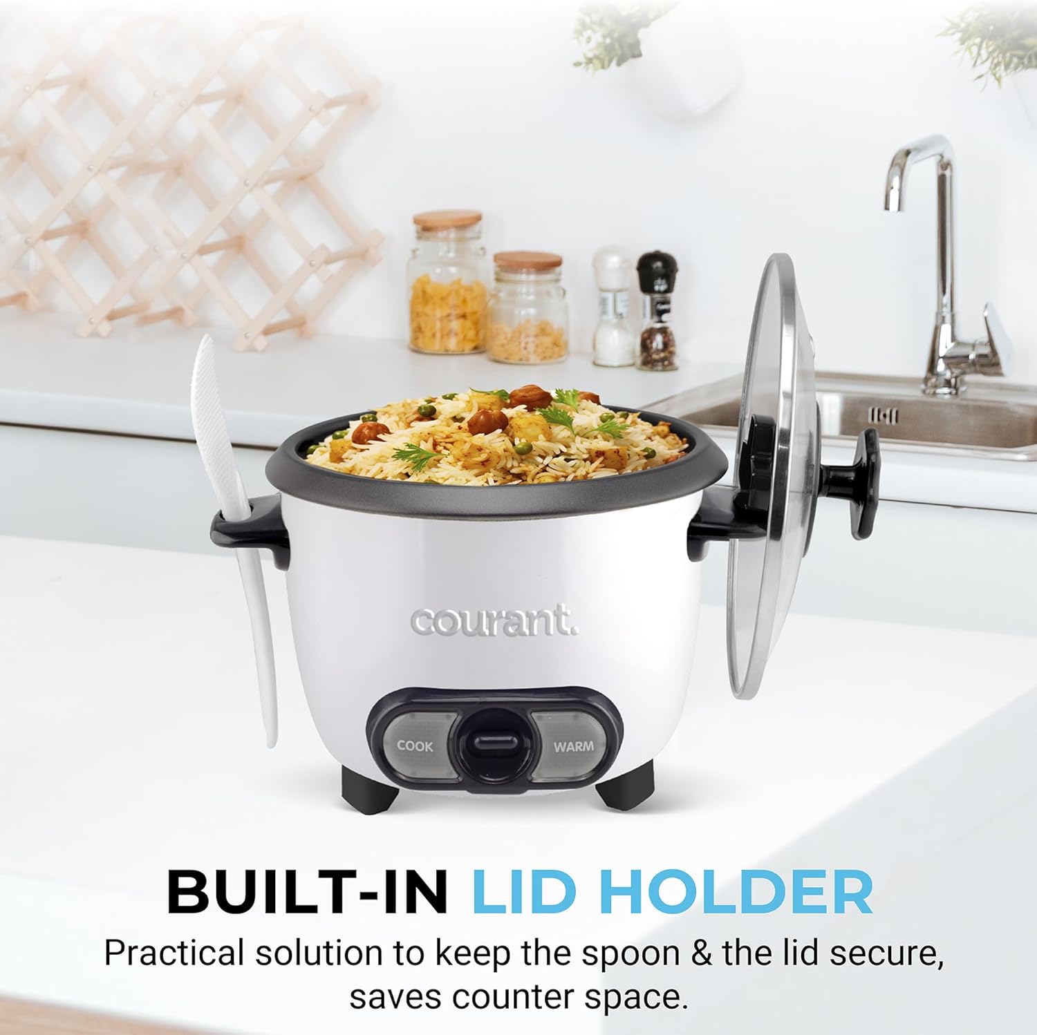 Courant Rice Cooker 6-Cup (Cooked), Removable Non-Stick Bowl, One Touch Rice Cooker, White