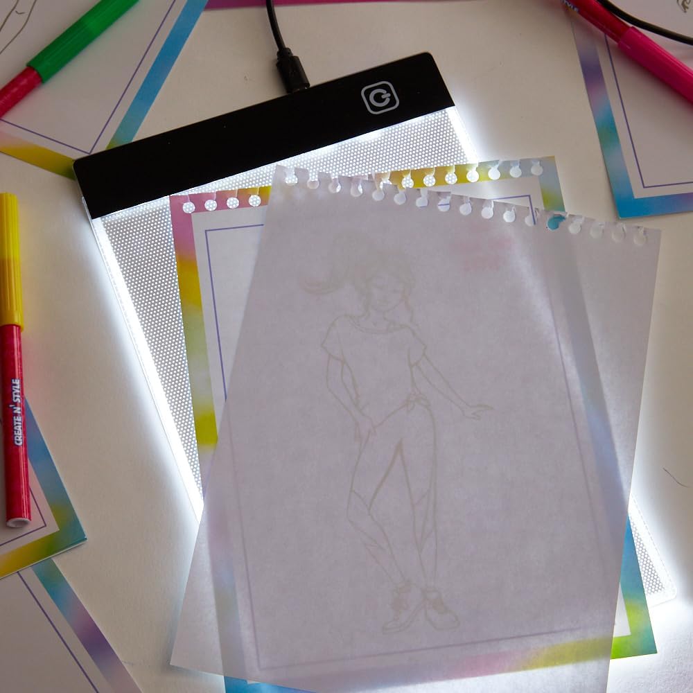 Create N’ Style Fashion Design Light Up Tracing Pad Kit, Kids Coloring Art Activity Set with Stickers and Stencils