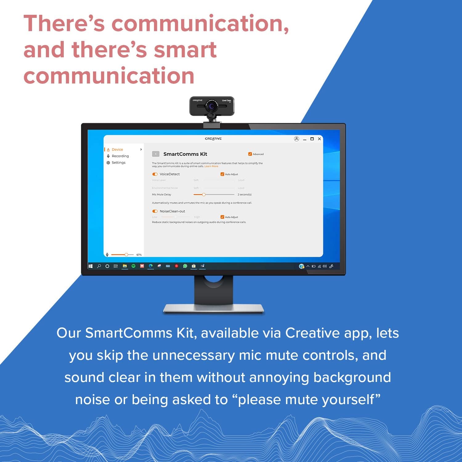 DUAL BUILT-IN MICS WITH SMART COMMS FEATURES – With two built-in omni-directional digital microphones, your voice gets picked up clearly and accurately, and you will come off sounding natural and realistic; almost as natural as talking face-to-face. It also comes with our SmartComms Kit, a suite of smart communication features, including NoiseClean-out that removes unwanted background noise, via the downloadable Creative app for Windows