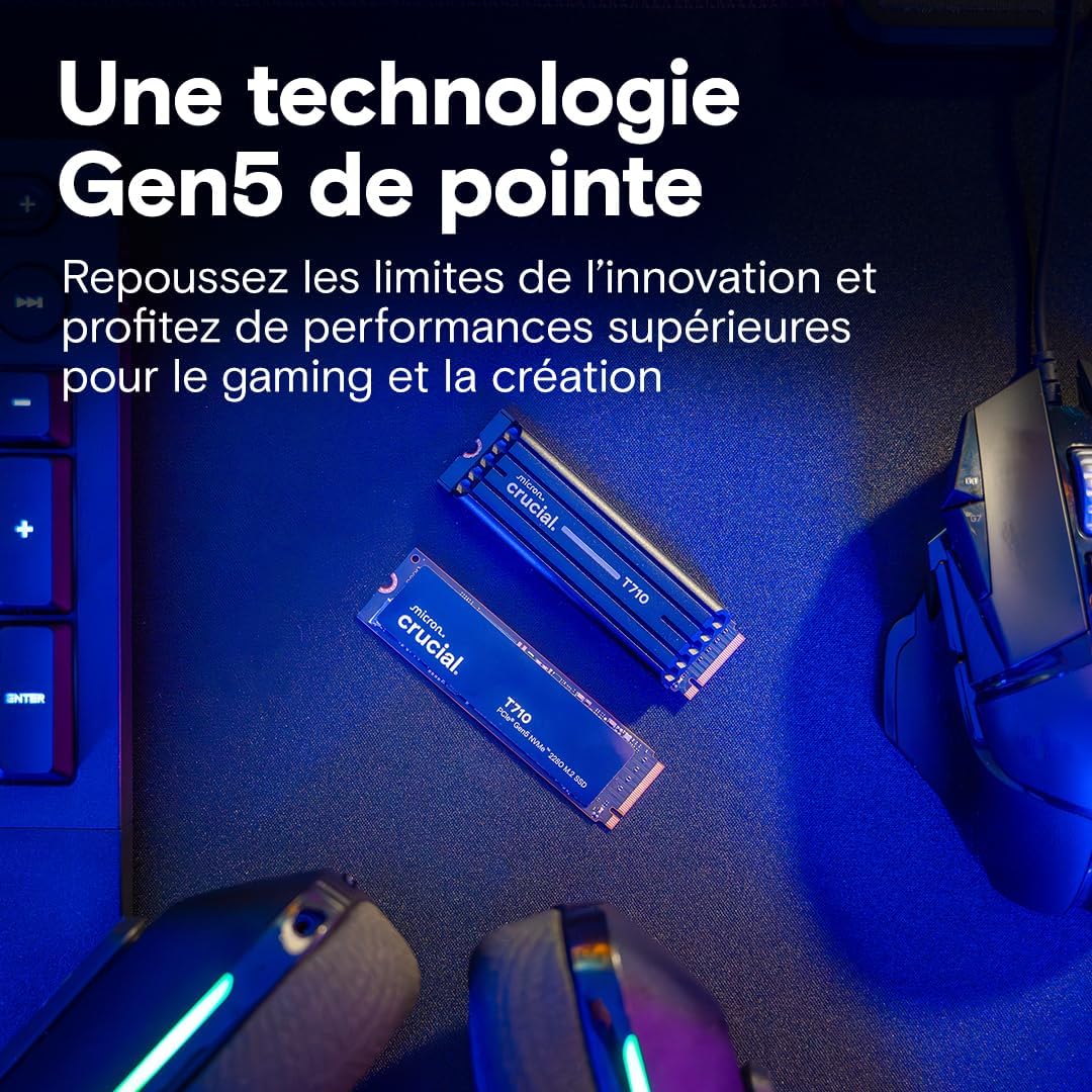 LEADING GEN5 TECHNOLOGY: Crucial is a pioneer in blazing-fast Gen5 storage, built for maximum performance. The T710 showcases Crucial’s innovation and pushes the boundaries of what’s possible in gaming, creativity, and beyond