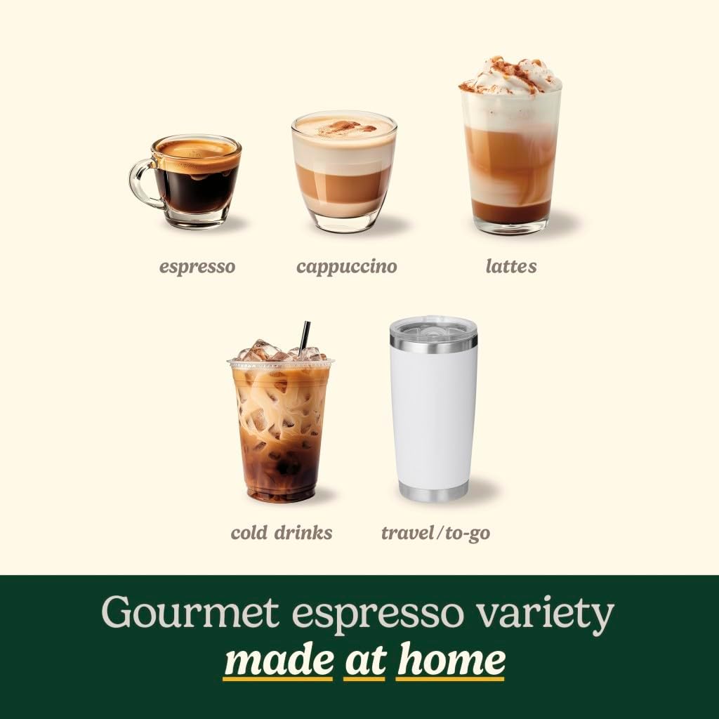 BEVERAGES TO GO: Designed for convenience, this gourmet espresso machine accommodates up to 20-ounce travel mugs, so you can take your creations on the go.