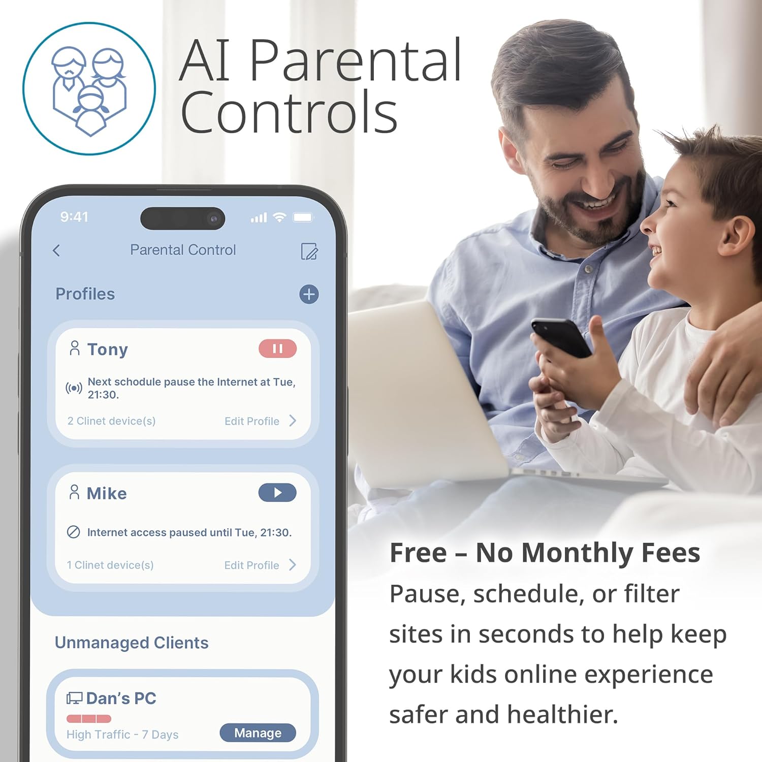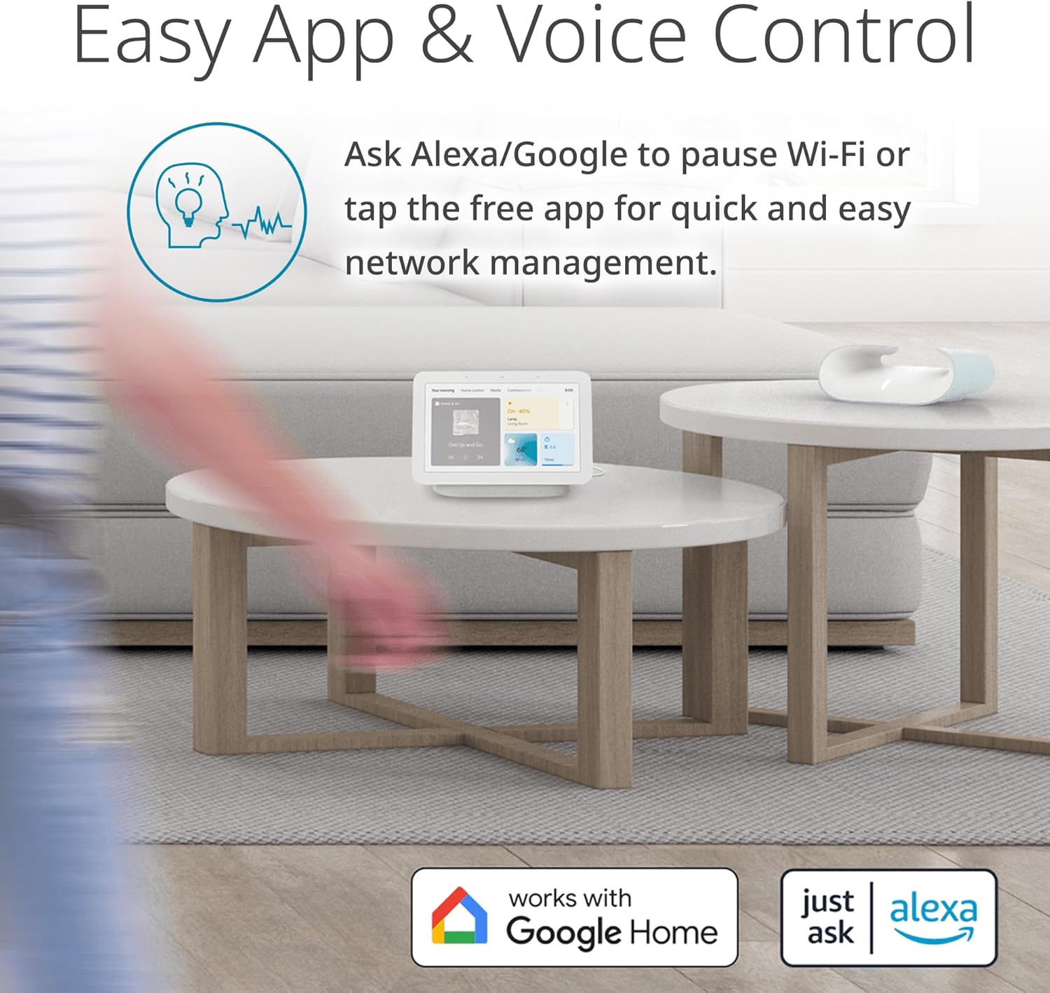 EASY APP & VOICE CONTROL – Ask Alexa/Google to pause Wi-Fi or tap the free app for quick and easy network management