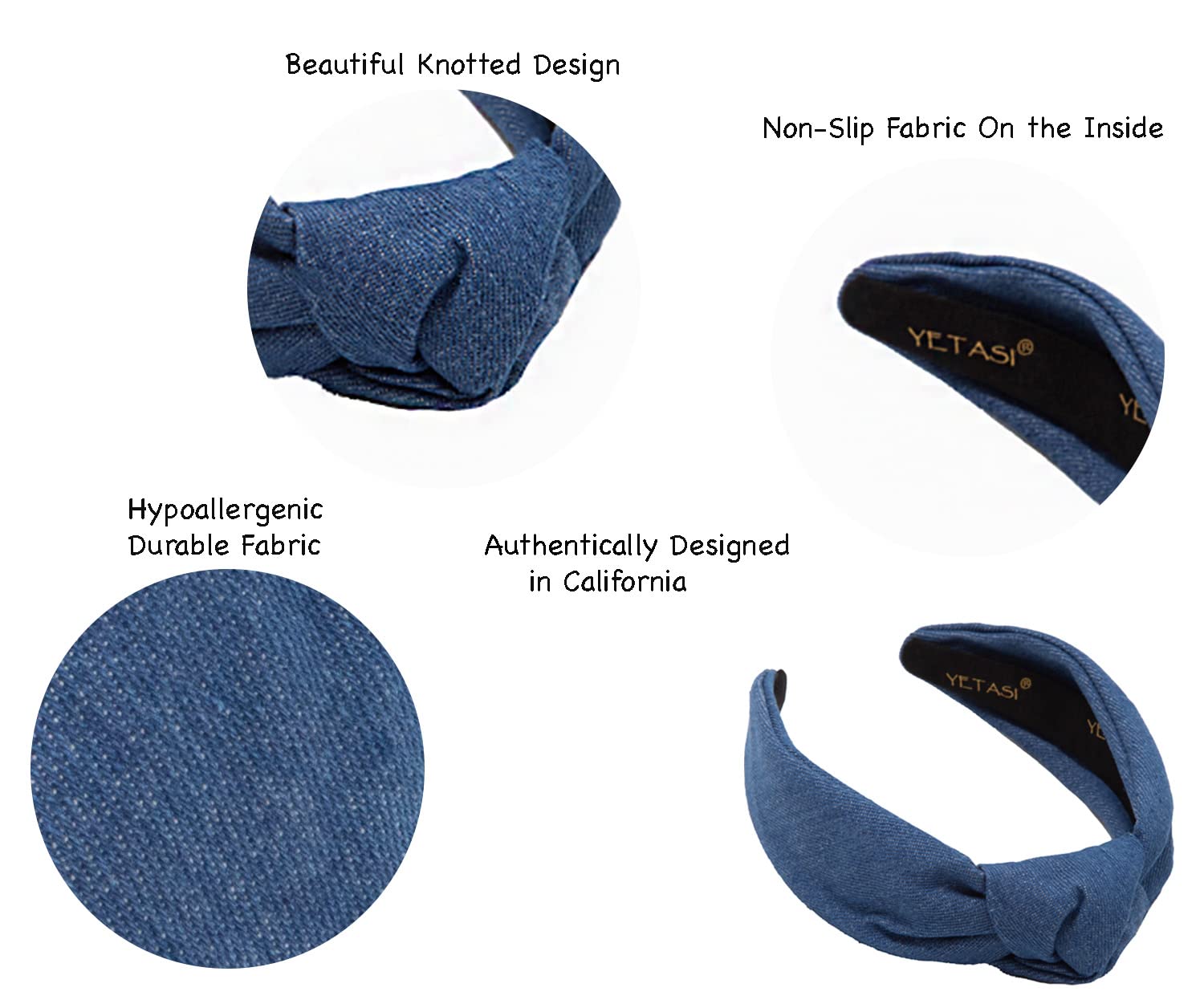💜 [ WIN MANY COMPLEMENTS ] You will Win Many Complement with this Cute headbands for women , YETASI Hair Styling Accessories are Uniquely and Exclusively Designed for and will Shine in any Occasions. Light Denim headband women is Compliting any Outfit. 👸🏼