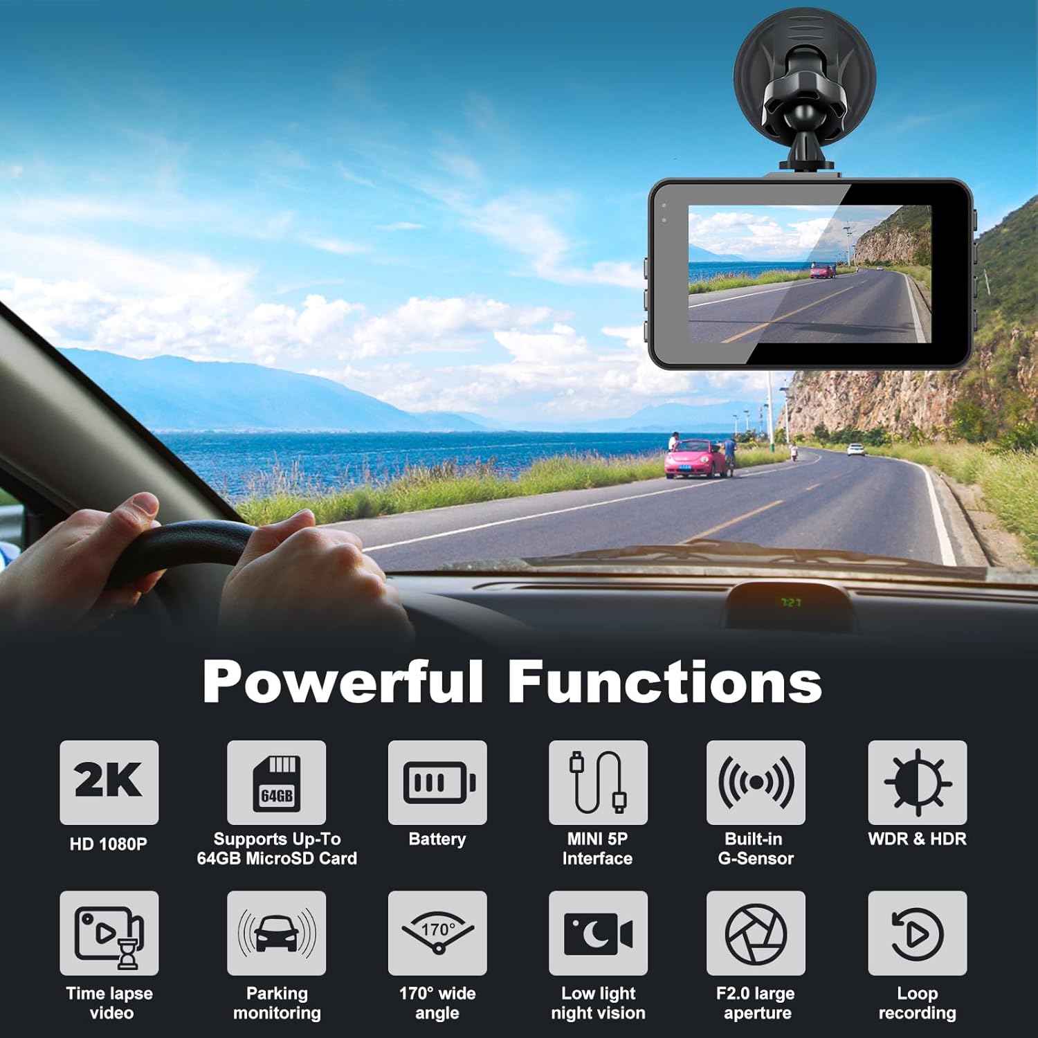 User-Friendly Operation & Instant Playback: Easily review footage directly on the vivid 3.0-inch IPS screen. Features USB 2.0 power interface, HDMI output, and supports to 64GB memory cards. Simple setup and intuitive controls make this car camera dash cam perfect for all drivers.