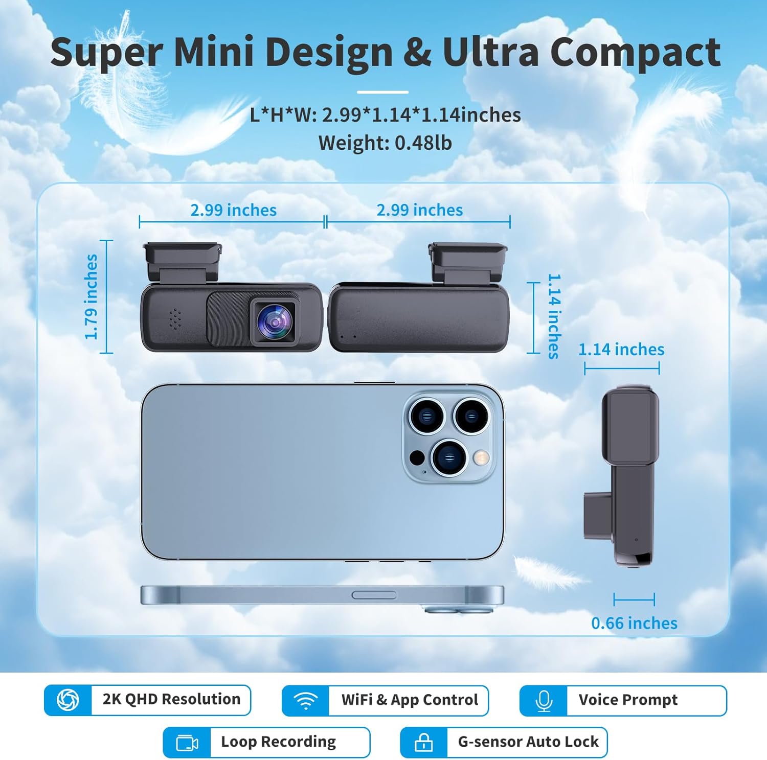 2K UHD Resolution: This dash camera that records Capture every detail with 2560×1440 resolution, delivering 80% more clarity than 1080P. Perfect for reading license plates, road signs, and unexpected moments, day or night. A 170° wide-angle lens, F2.0 aperture, and WDR-enhanced night vision ensure clear, reliable footage even in low-light conditions—so nothing escapes your view. It supports microSD cards up to 128GB. For optimal results, use a Class 10 microSD card and format it upon first use