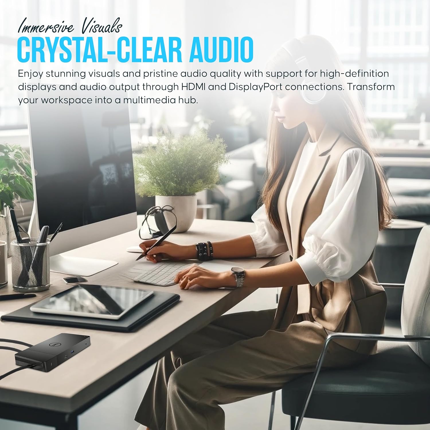 [Versatile Connectivity] – The Dell D6000S docking station offers a comprehensive range of connectivity options, including multiple USB ports, HDMI, DisplayPort, and audio jacks, providing users with the flexibility to connect various peripherals and devices.