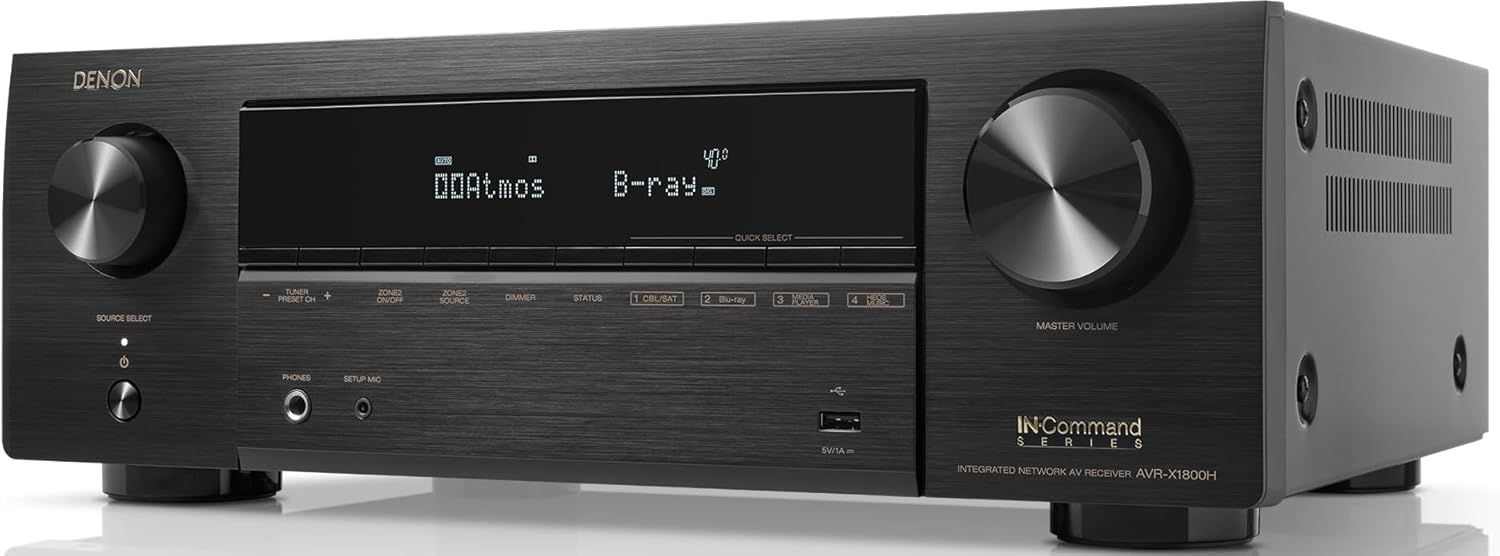 Enjoy 8K video and 3D audio with Denon AVR-X1800H AV Receiver. Fills small to medium rooms with brilliant sound through 7.2/5.2.2 setup using Dolby Atmos/DTS:X and delivers seamless streaming to HEOS speakers via 8K/HDCP 2.3.