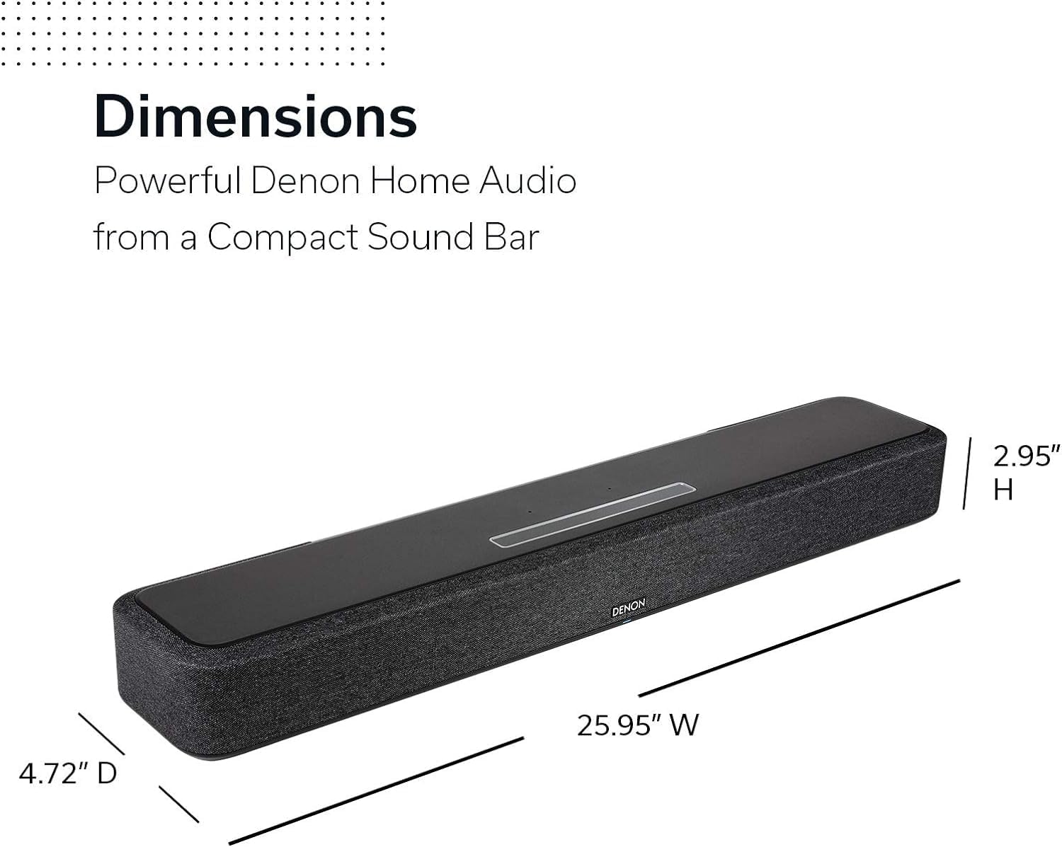 Powerful Audio From a Compact Sound Bar: The Denon Home Sound Bar 550’s compact 26″ footprint saves space without sacrificing performance. The clean, simple industrial design makes it suitable for any room | Impactful 3D Surround Sound: Denon has been the leader in home theater audio for decades. Sophisticated Dolby Atmos and DTS:X processing makes every movie feel huge