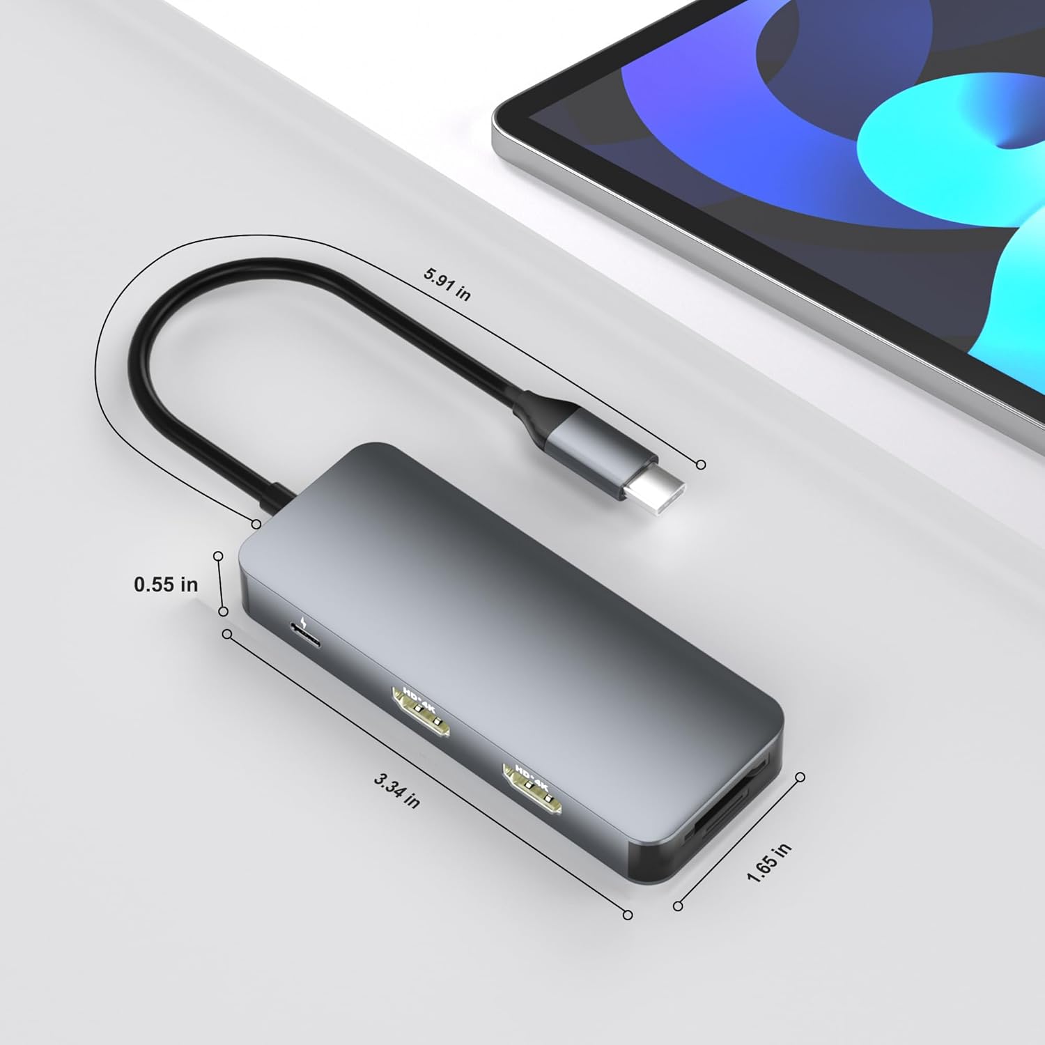 Docking Station Dual Monitor for Dell/HP/Lenovo/Mac Laptop, USB C Laptop Docking Station Dual Monitor, Dual HDMI Adapter for 2 Monitors, 8 in 1 USB C Hub Multiport Adapter with HDMI/USB/PD/SD/TF