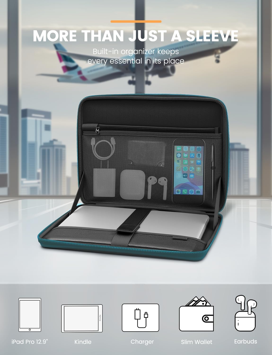 Built-In Bump Protection : This computer cases for laptops, built with a thickened EVA hard shell and soft foam interior, this sleeve absorbs daily knocks and unexpected drops with ease. Whether it’s shoved in a crowded backpack or tossed onto a TSA tray, your laptop is cushioned on all sides with this laptop case. It’s perfect for frequent travelers, commuters, and students who demand impact protection without bulk with this chromebook case.