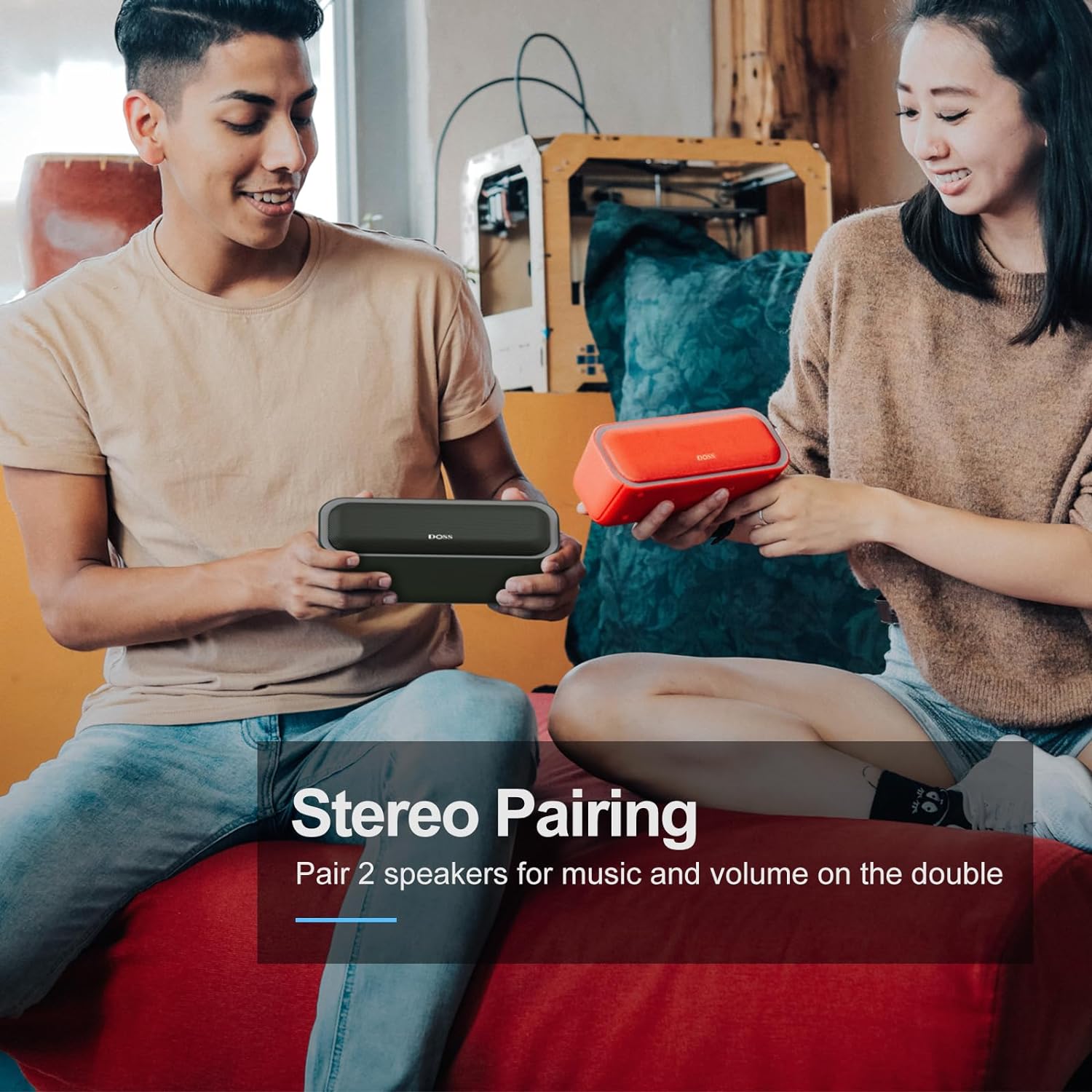 IPX6 Waterproof: Let the DOSS Soundbox Pro waterproof Bluetooth speaker party by the poolside, at the beach, at the park, at camping, and more. With IPX6 waterproof, the speaker can resist water splash, spray, and rain. But don’t soak it in water directly.