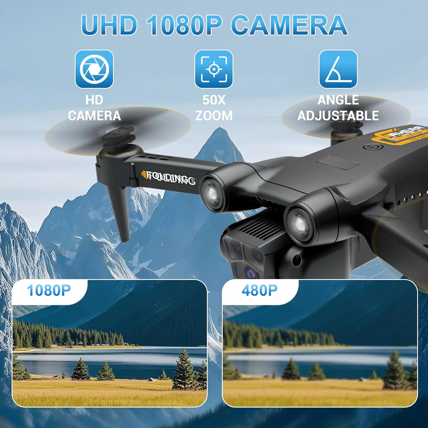 1080P Drone with Camera: This Drone with camera for adults 1080P high-definition camera, equipped with a 90° adjustable lens, helping you easily capture wonderful aerial photos and high-definition videos. Relying on FPV real-time image transmission technology, you can view aerial images in real time, explore distant beautiful scenes, record unforgettable moments, and it supports gesture recognition for automatic photo taking and video recording.