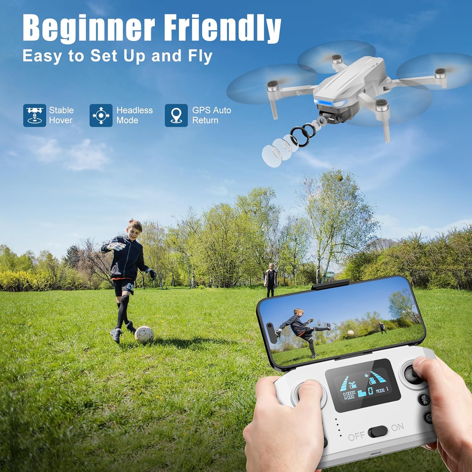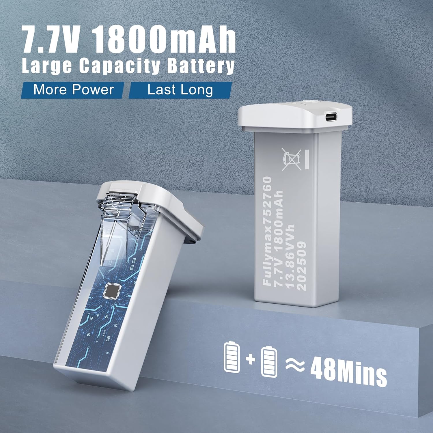 【48 Mins Long Flight Time】Powered by 2 powerful 7.7V 1800mAh batteries, the drones for adults offer a total flight time of up to 48 minutes for long-lasting and uninterrupted aerial filming. 7.7V The battery indicator informs you of the current capacity and enables you to plan your flights. Compared with competing 7.4V and 3.7V batteries, our 7.7V battery is more powerful and durable.