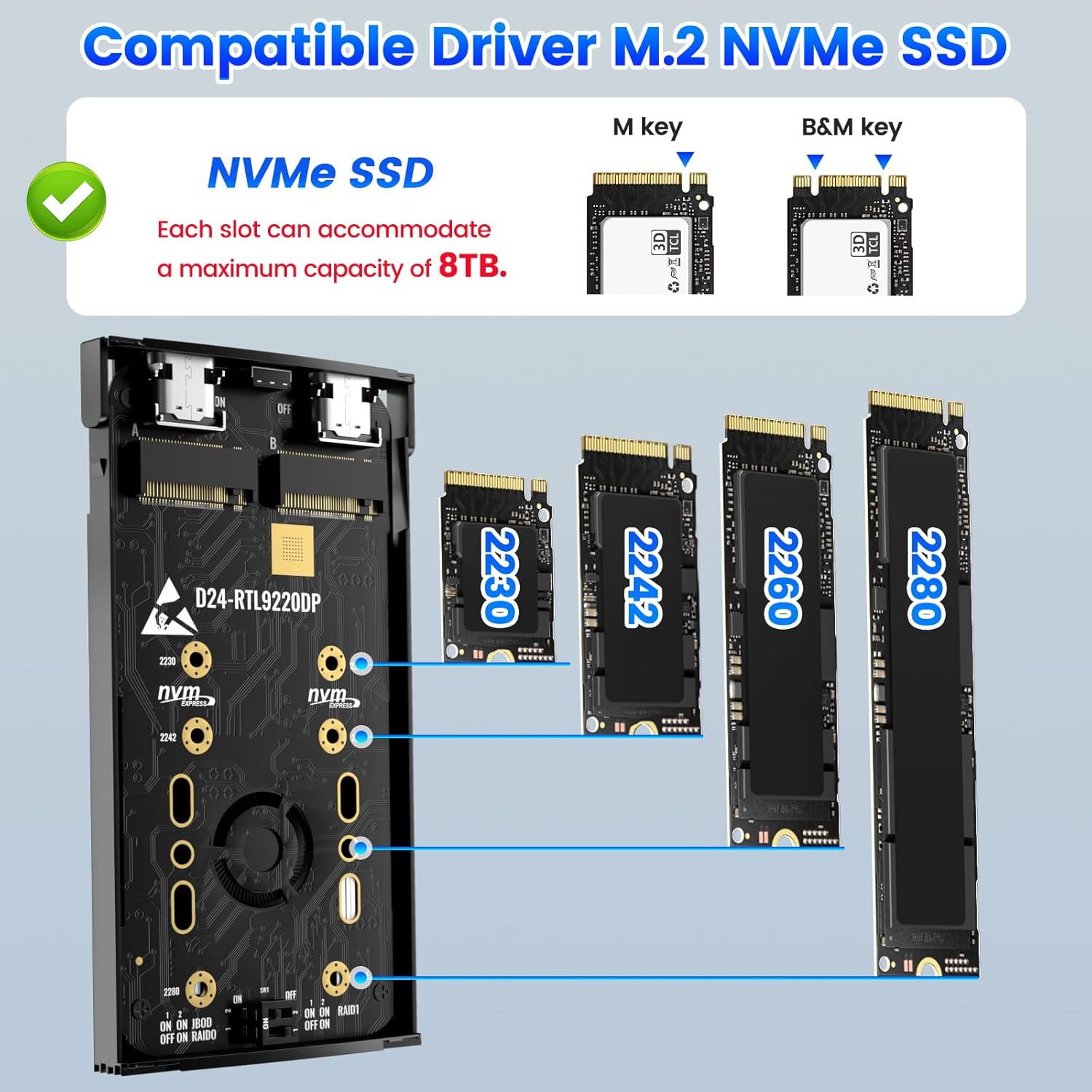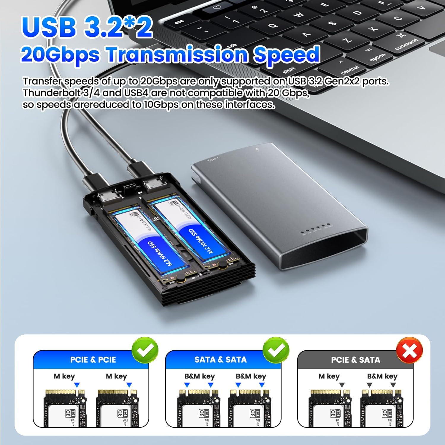 High-Speed Data Transfer: With a transfer rate of 20Gbps, it handles large file transfers, backups, and data-intensive tasks with ease. Supports 8TB per slot, 16TB total.
