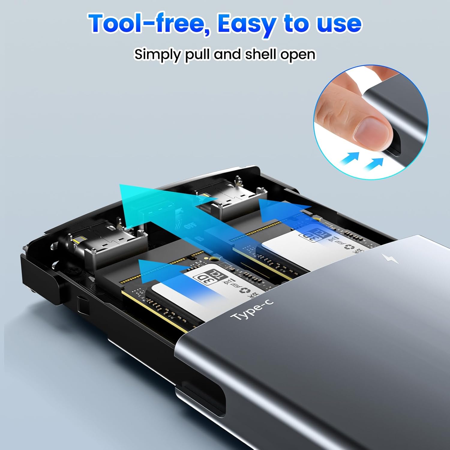 Tool-Free Installation: Easily open the SSD enclosure cover without using any tools, making it convenient to switch and replace SSDs; This feature will help you improve the efficiency when you’re using the clone mode of this device, it’s very convenient to install and uninstall SSDs without any tool.