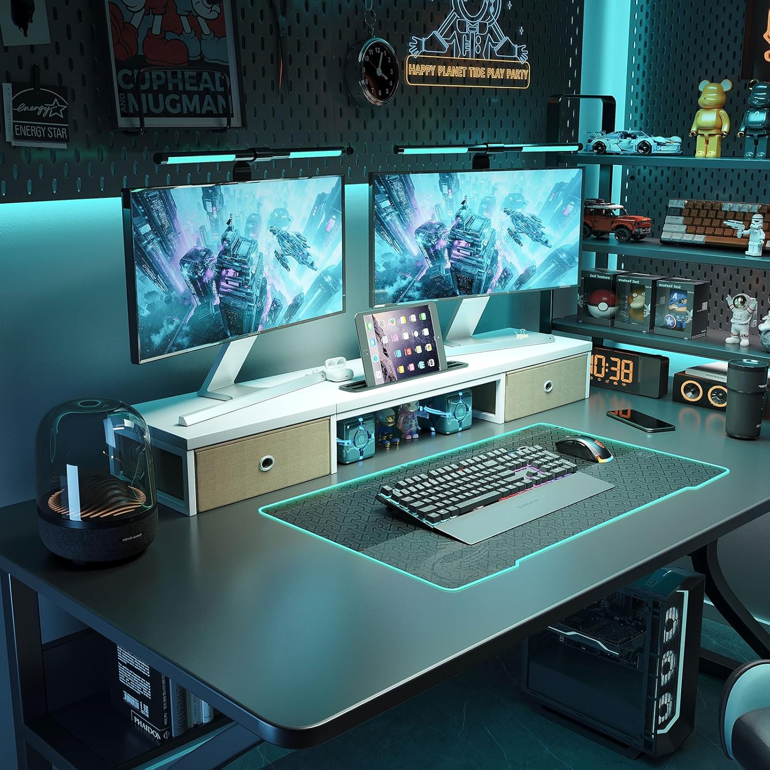 【Spacious Storage Solution】The dual monitor stand features two practical slide-out drawers, which offer ample storage space for office supplies and accessories. Protect your private items and make your desk more functional and organized. Enhance your work efficiency.