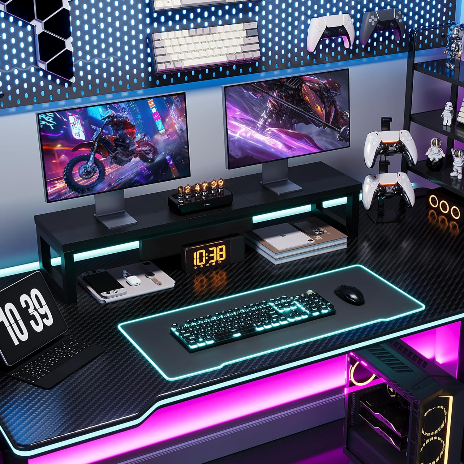 This long monitor stand riser are very suitable for the needs that working or playing games with two monitors. It also has powerful storage function, making your work, study, and gaming environment cleaner and more comfortable.