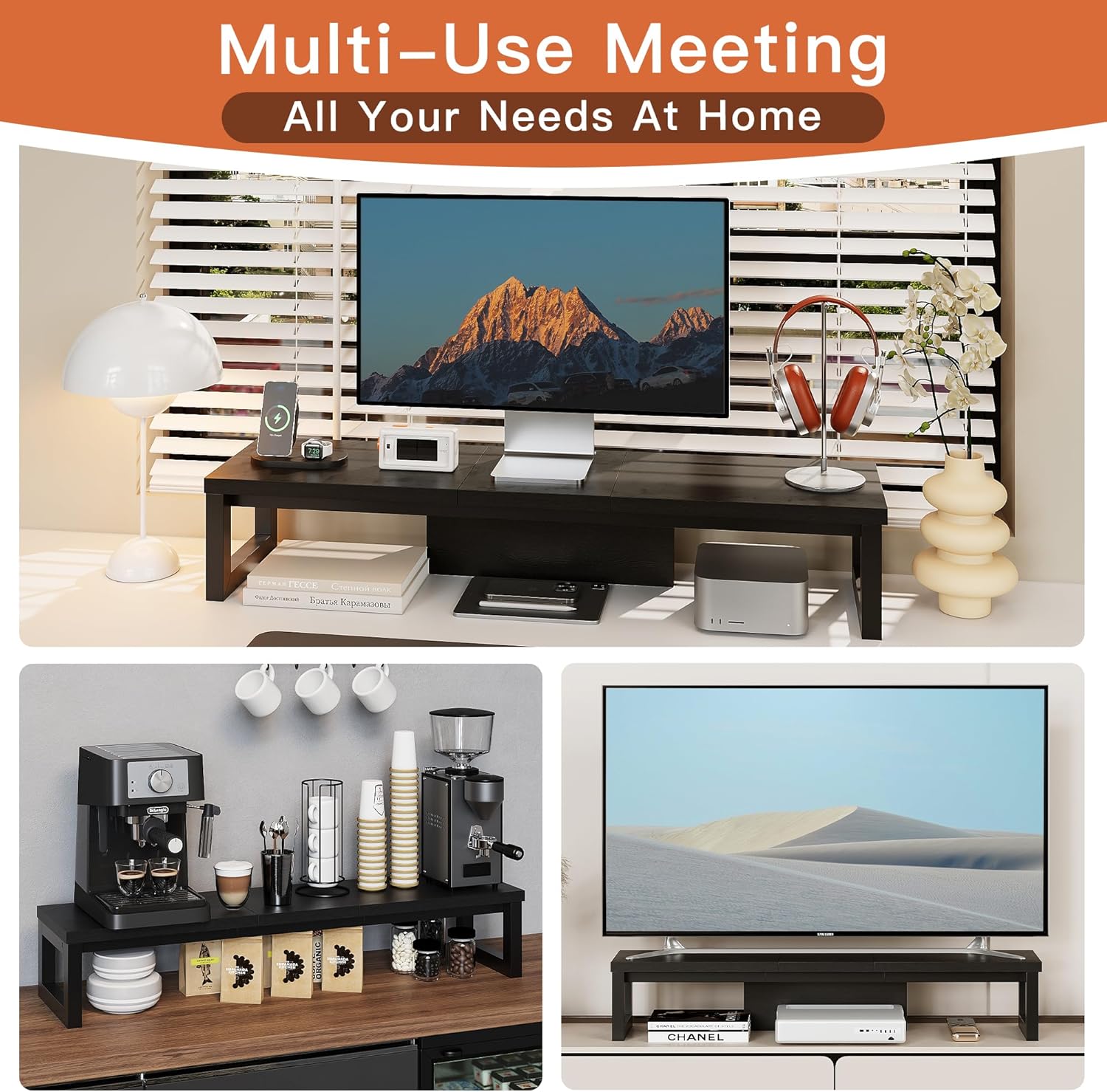 Multi-Use Meeting All Your Needs: The monitor stand has powerful storage function, we can use it for printer, computer, laptop, folders or books; and we can also use it as TV riser stand, cosmetic stand, kitchenware stand