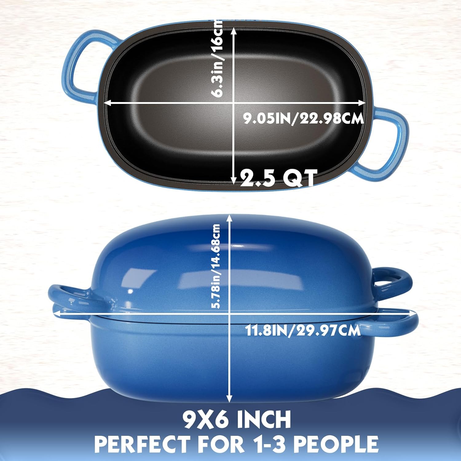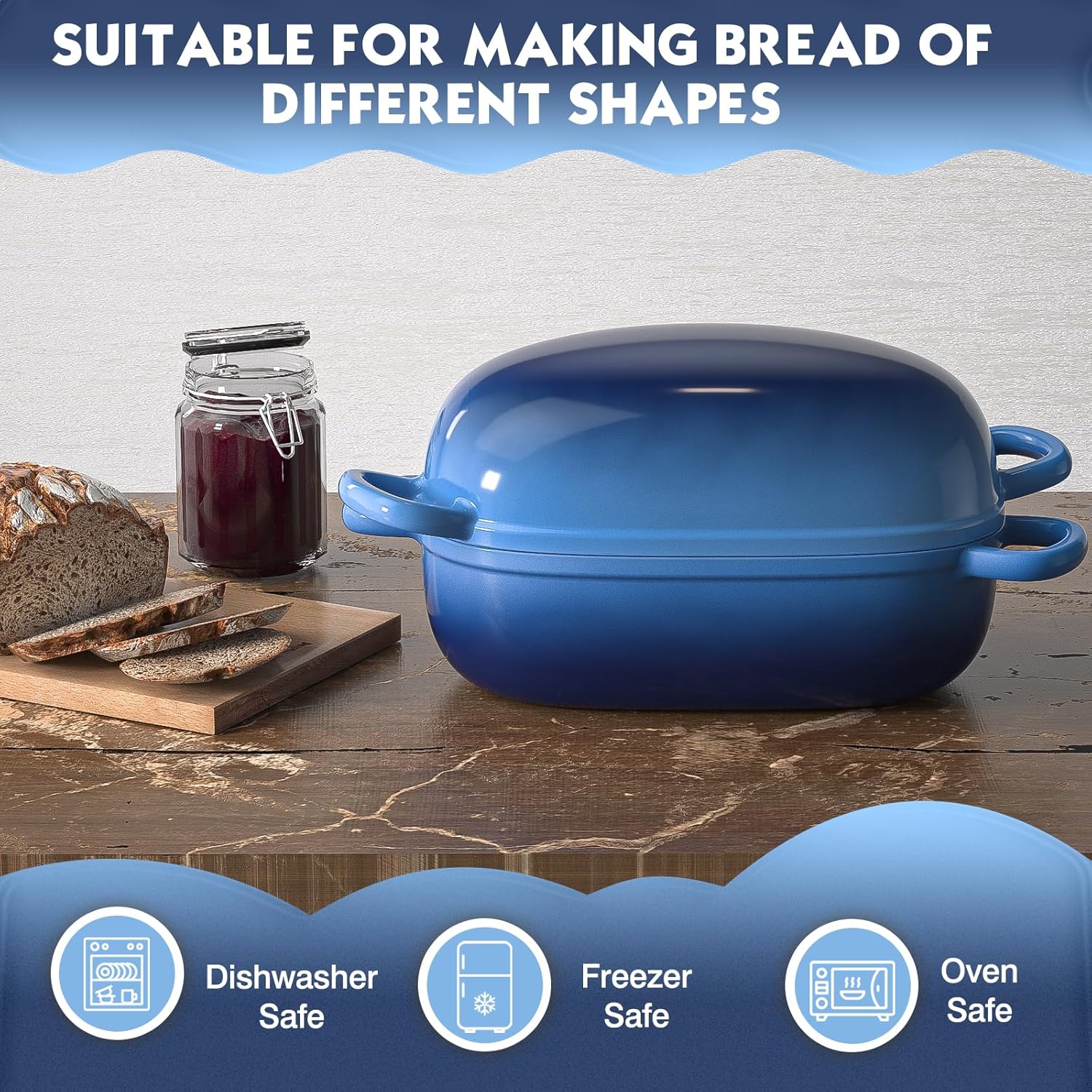 [Safer Bread Baking] The handles of the cast iron bread oven are large enough to be operated with oven gloves, without worrying about burning your hands when the bread is degassing, effectively avoiding cumbersome or potentially dangerous operations during baking. The oval design keeps the bread moist inside, which helps to form the internal structure of the bread and perfectly bake the surface