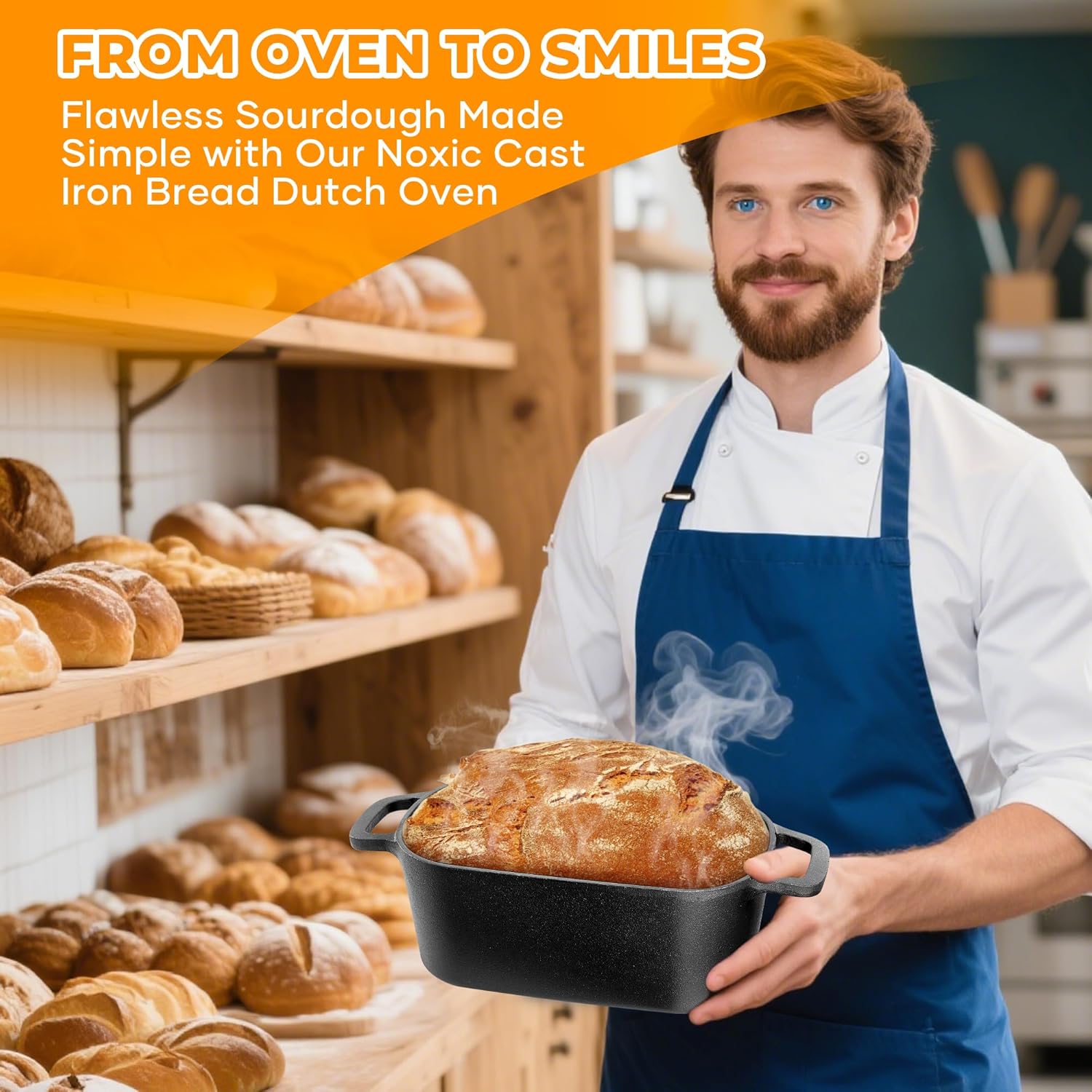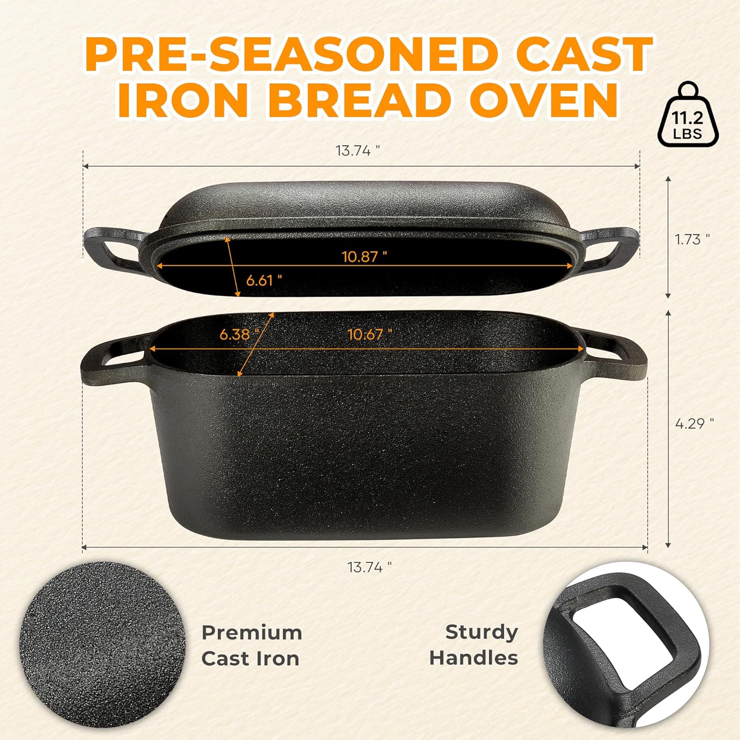 Bakery-Grade Performance – This Pre-seasoned cast iron bread dutch oven embodies professional thermal mass, functioning as a bread oven to produce bakery-style crust depth and tender interiors