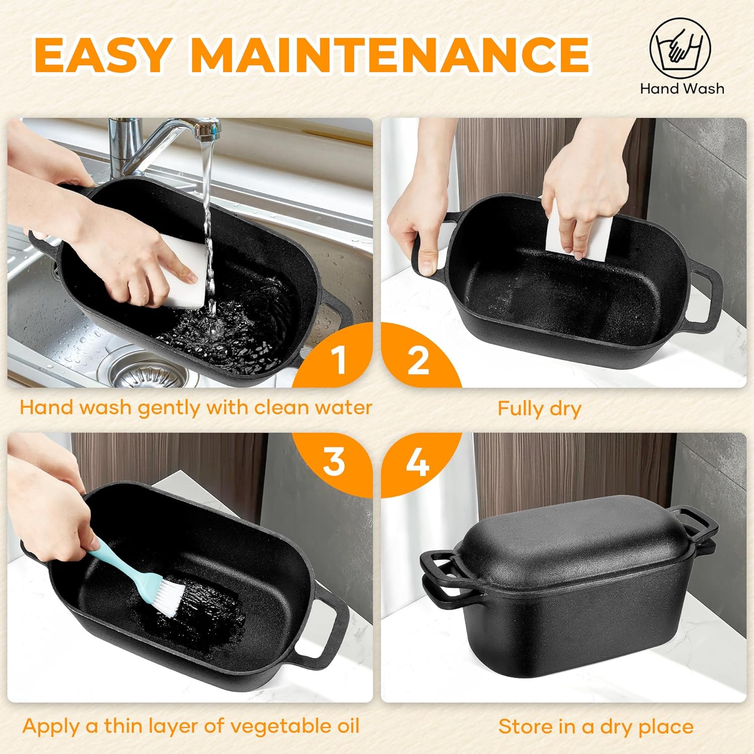 Effortless Maintenance & Longevity – The naturally seasoned surface of this cast iron bread oven resists sticking; post-bake cleanup requires only warm water and gentle brushing, then a light oiling to preserve its finish