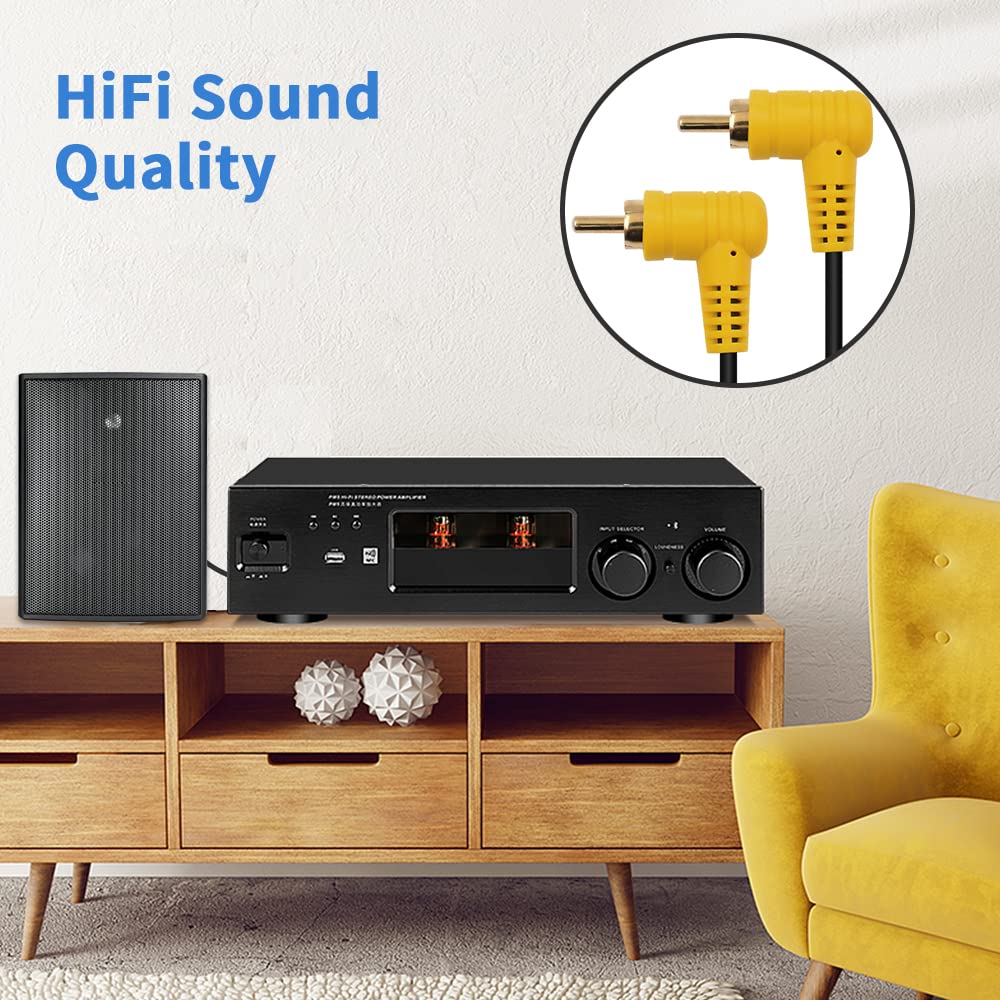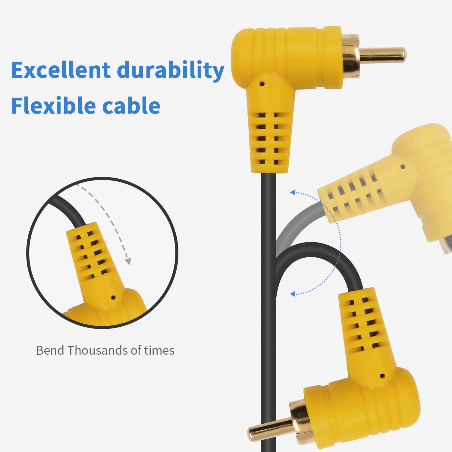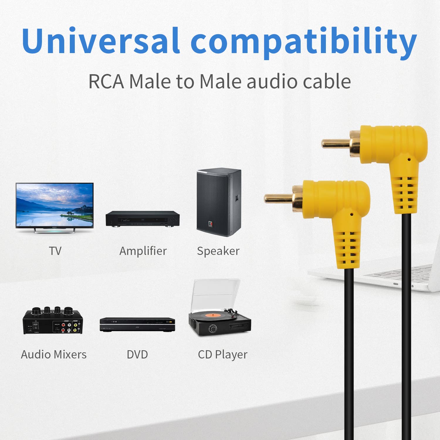 RCA to rca audio cable: The perfect 90 degree right-angle design can be used in tight or small spaces, saving space to a large extent, 90 degree RCA connectors, prevent cable bending, and have a longer service life.