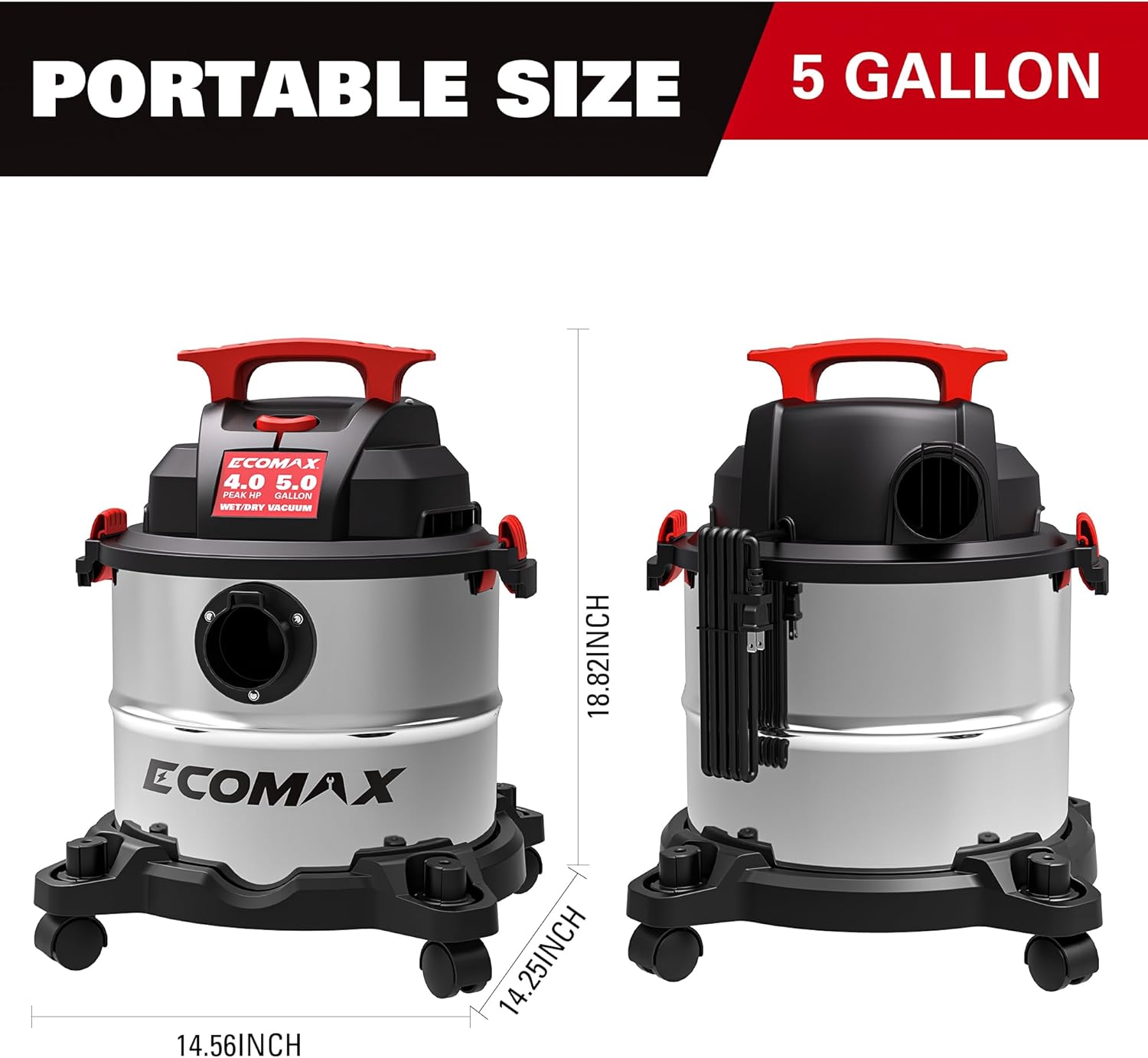 DURABLE, SMART & SAFE — DESIGNED TO LAST– Crafted with premium stainless steel, this shop vacuum resists dents, corrosion, and everyday wear. Onboard storage keeps attachments organized and within reach. Plus, the Safety Buoy feature automatically stops the vac when water levels are too high, offering peace of mind during wet pickups.