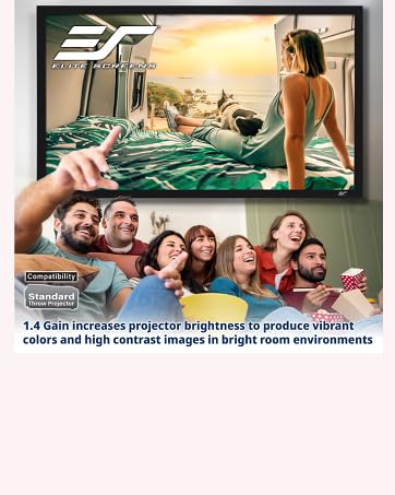 Premium Build & Quality Materials – Features a 120-inch (16:9) fixed frame design with view size 58.7″ H x 104.7″ W and overall size 63.4″ H x 109.4″ W x 1.6″ D. The 2.75″ aluminum frame is wrapped in plush black velvet to absorb overshoot and boost image contrast.