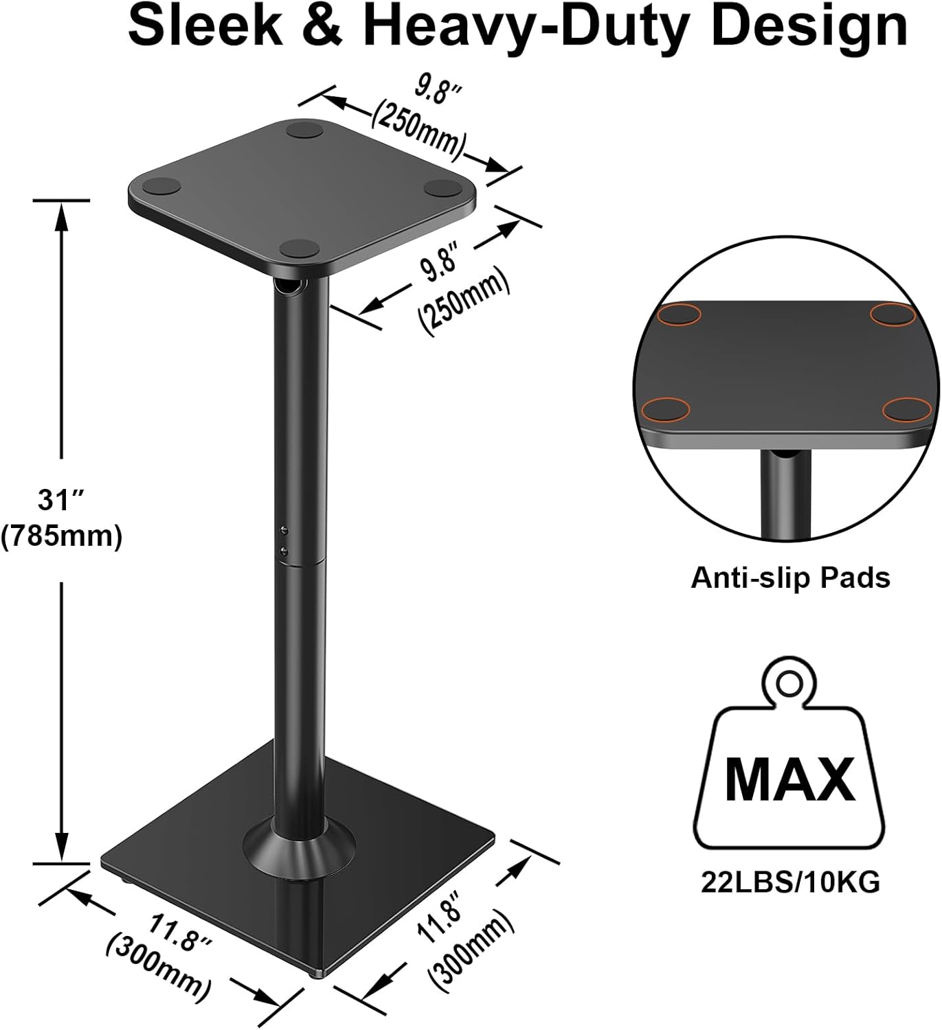 Wire Management: Our monitor speaker stand feature a 31″ pole with two large holes (1.8″ H x 0.9″ W) to route your speaker cables for a clean and organized look. A soft rubber grommet around the hole avoids scratching the wires