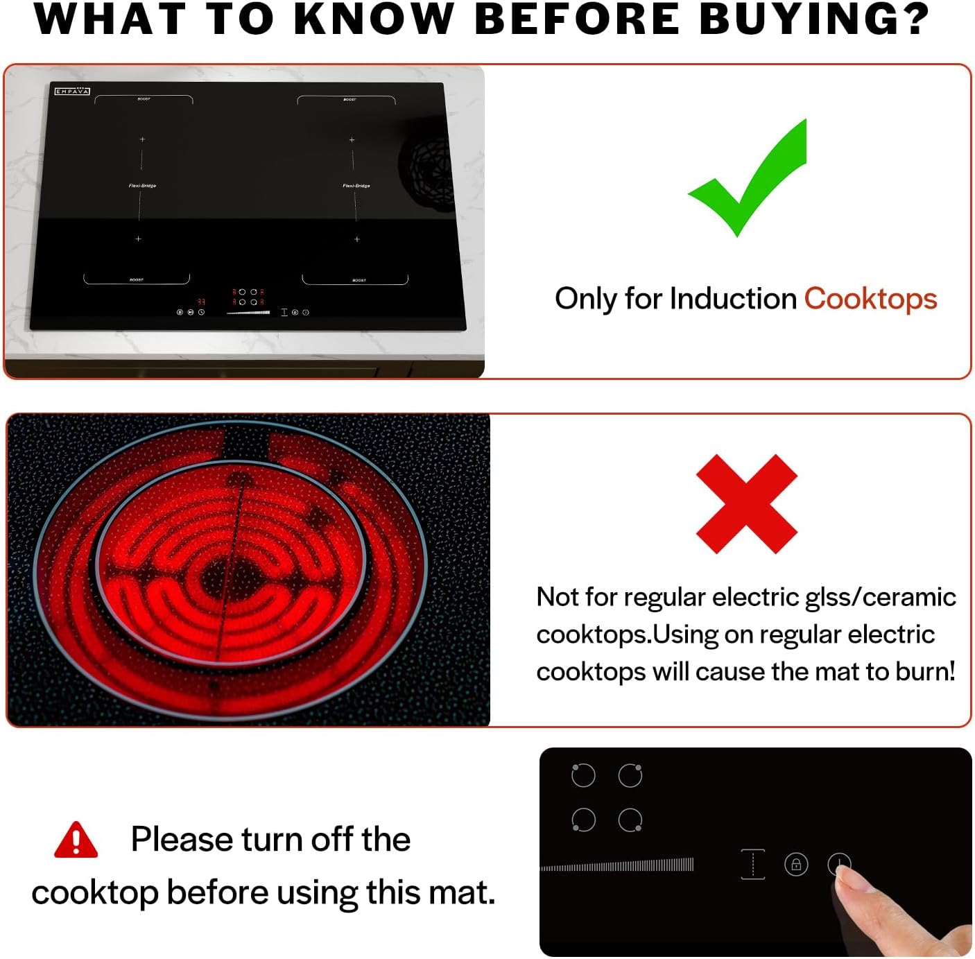 PROTECT YOUR VALUABLE COOKTOP – Shield your induction cooktop from daily wear and tear, including scratches, cracks, and stains. The durable silicone-coated fiberglass material acts as a barrier, keeping your cooktop surface pristine and extending its lifespan.
