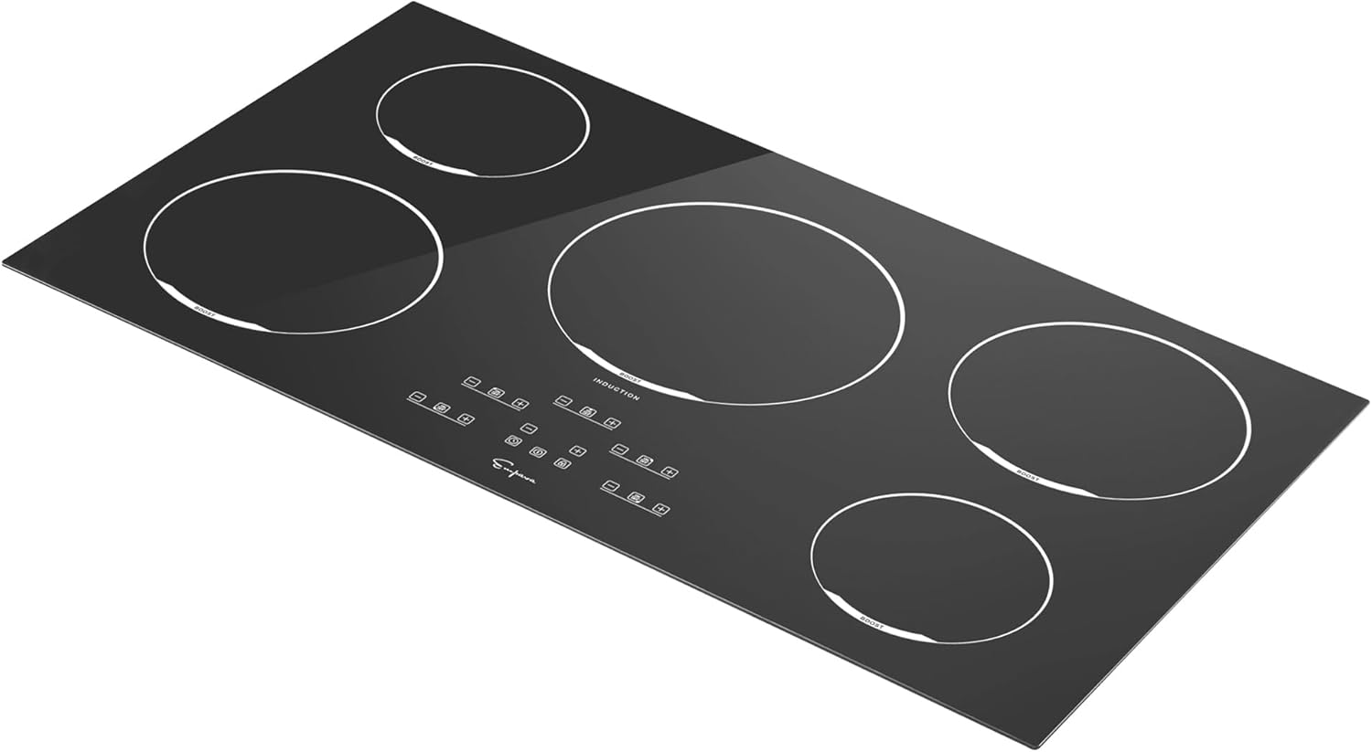 Empava 36″ Electric Induction Cooktop Built-in Modular Stovetop with 5 Elements 9 Power Level Boost Burners in Black Vitro Ceramic Glass, 36 Inch