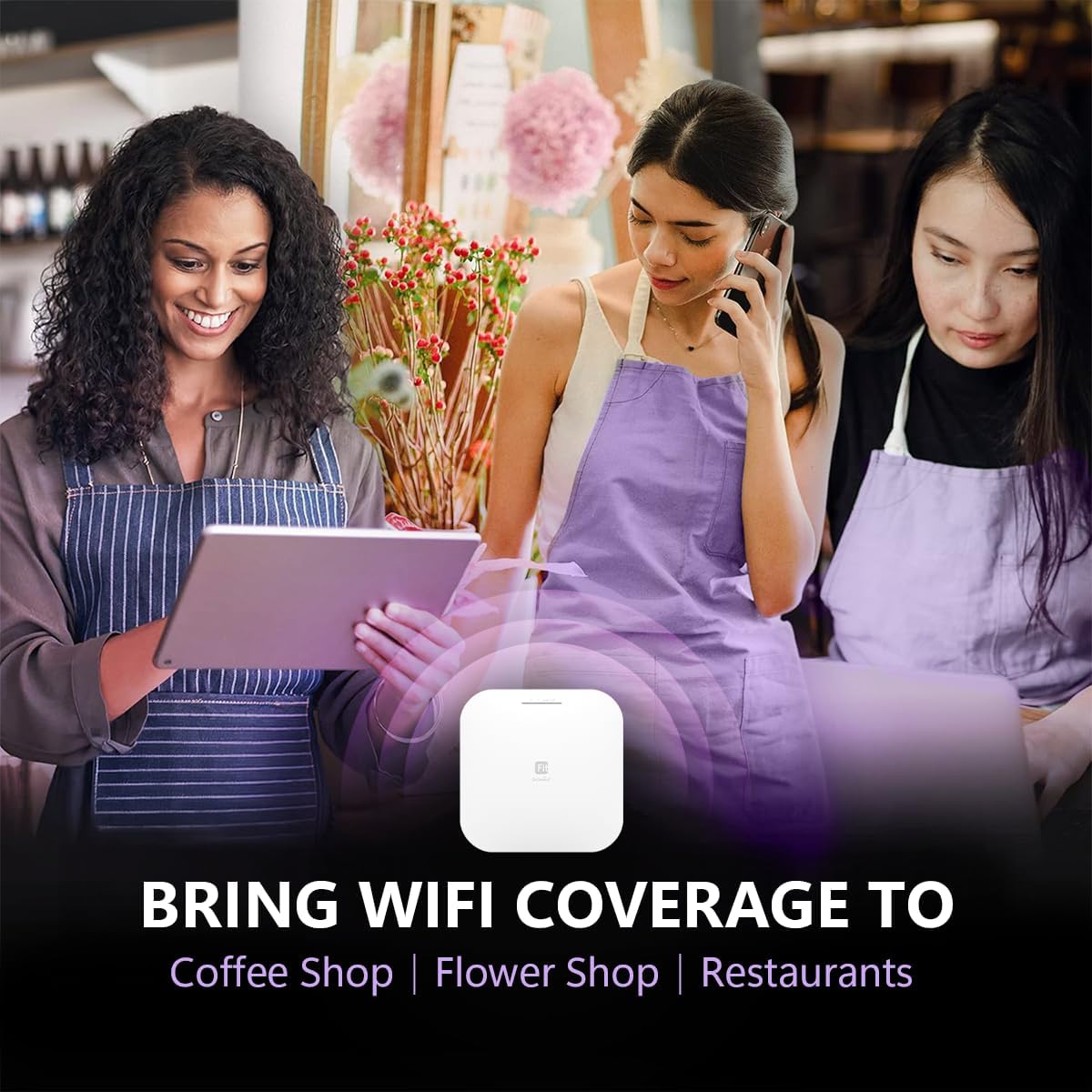 📍【Flexible Installation with PoE+】Power and connect your access point with a single Ethernet cable. Our PoE+ (802.3at) support allows for flexible installation up to 328 feet away from the power source, giving you the freedom to place the AP in the perfect location for optimal coverage without needing a nearby outlet.