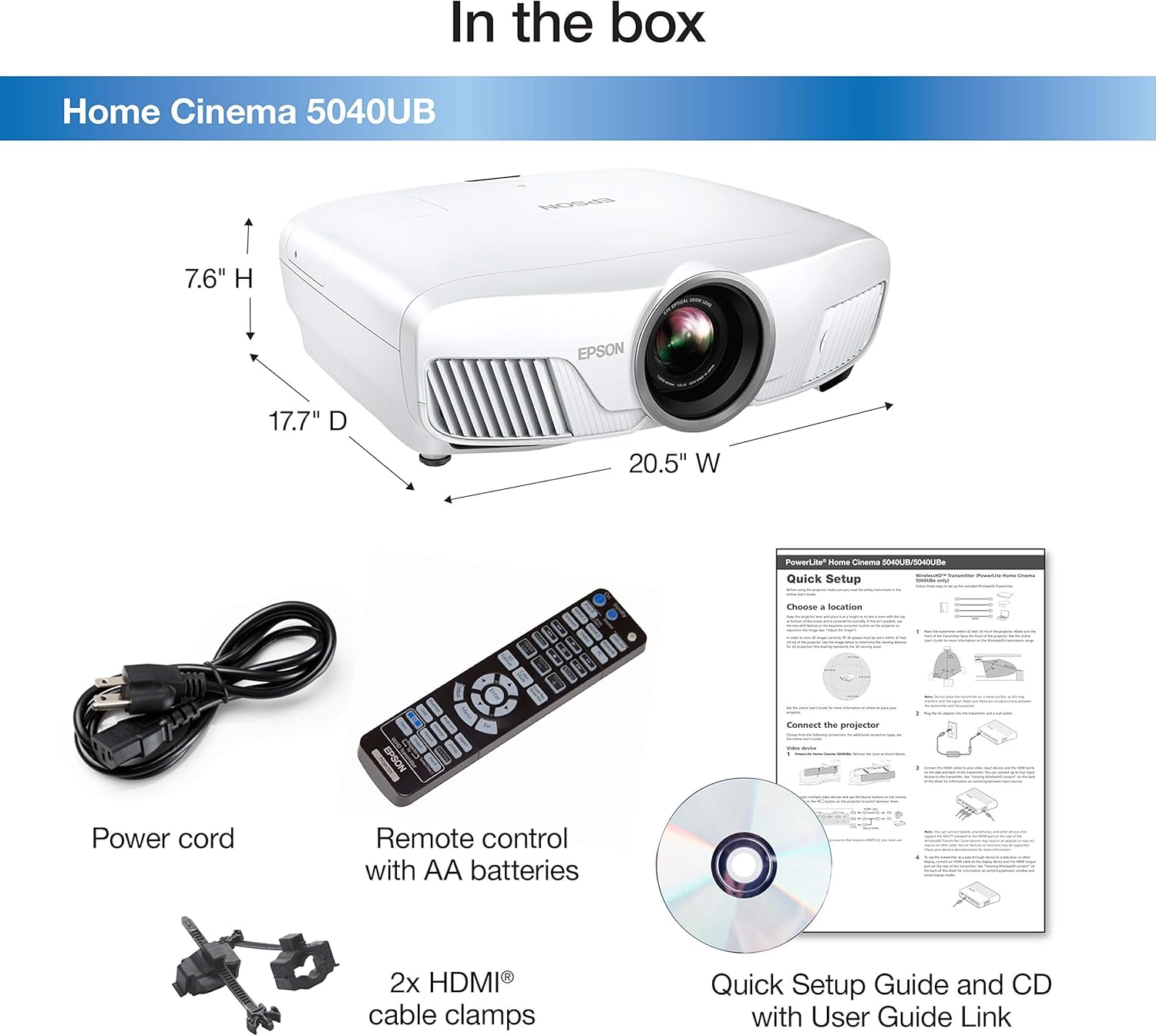 Get exceptional, color-rich performance and immersive images with the Home Cinema 5040UB. Epson PRO-UHD 3LCD home theater projectors deliver a groundbreaking combination of color, contrast and resolution for the ultimate entertainment experience. Every detail comes alive with 4K Enhancement Technology (1), which accepts 4K UHD content and upscales non-4K content. An advanced, 3-Chip, 3LCD design means no color wheel, white segment or rainbow effect. With HDR10 (2) and L*a*b* Ultra Wide Color Gamut, movies look extraordinary. Plus, get 100% Balanced Color Brightness, with 2,500 lumens equal color/white brightness (4), and an UltraBlack contrast ratio up to 1,000,000:1.