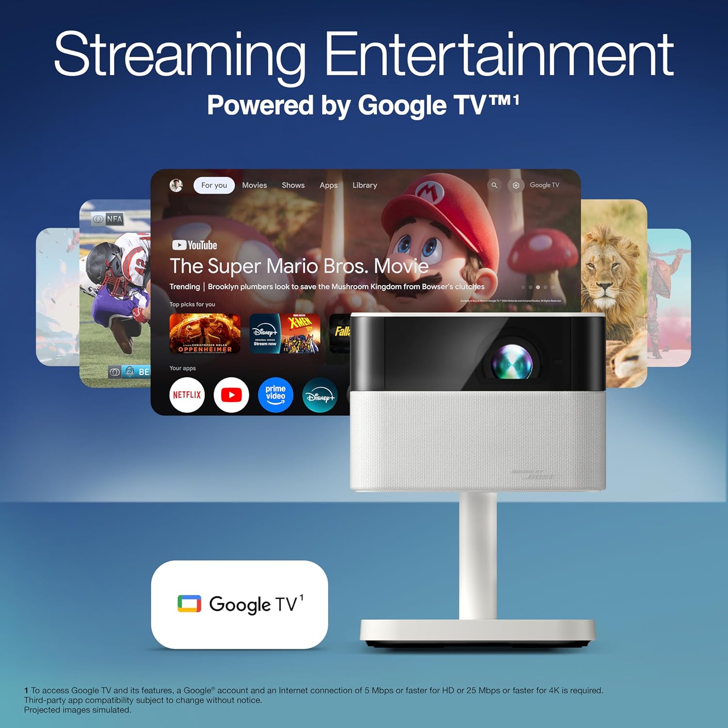Epson Lifestudio Flex Full HD Portable Lifestyle Projector, 700 Lumens of Color and White Brightness, Sound by Bose, Epson Projection Studio App, Stand, Google TV, 3-Chip 3LCD Triple Core Engine