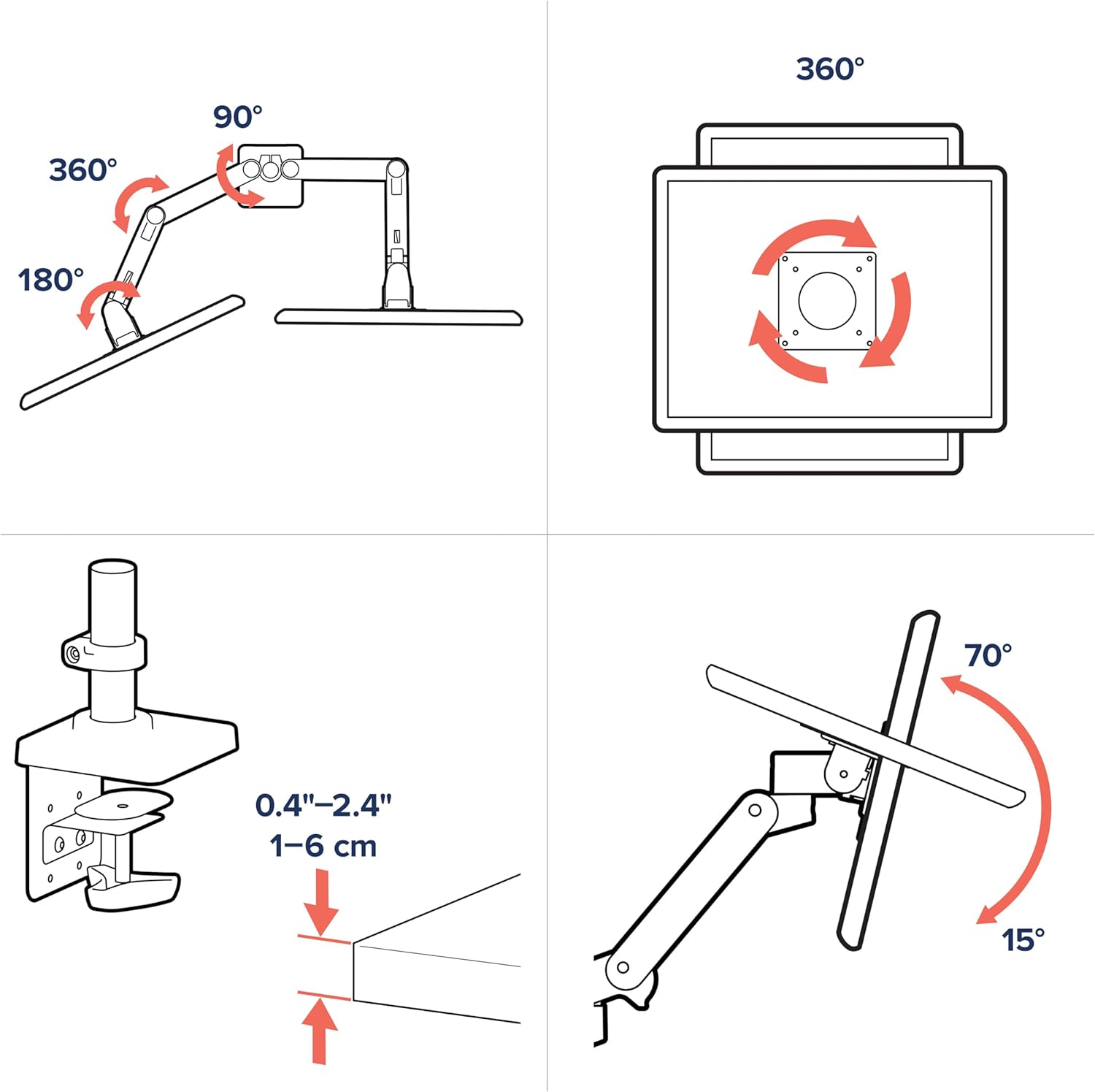 Versatile mounting options: Includes two-piece desk clamp to fit a variety of desk types; desk clamp attaches to desks 0.4 to 2.4 inches thick; grommet mount available as separate accessory (98-728-293)