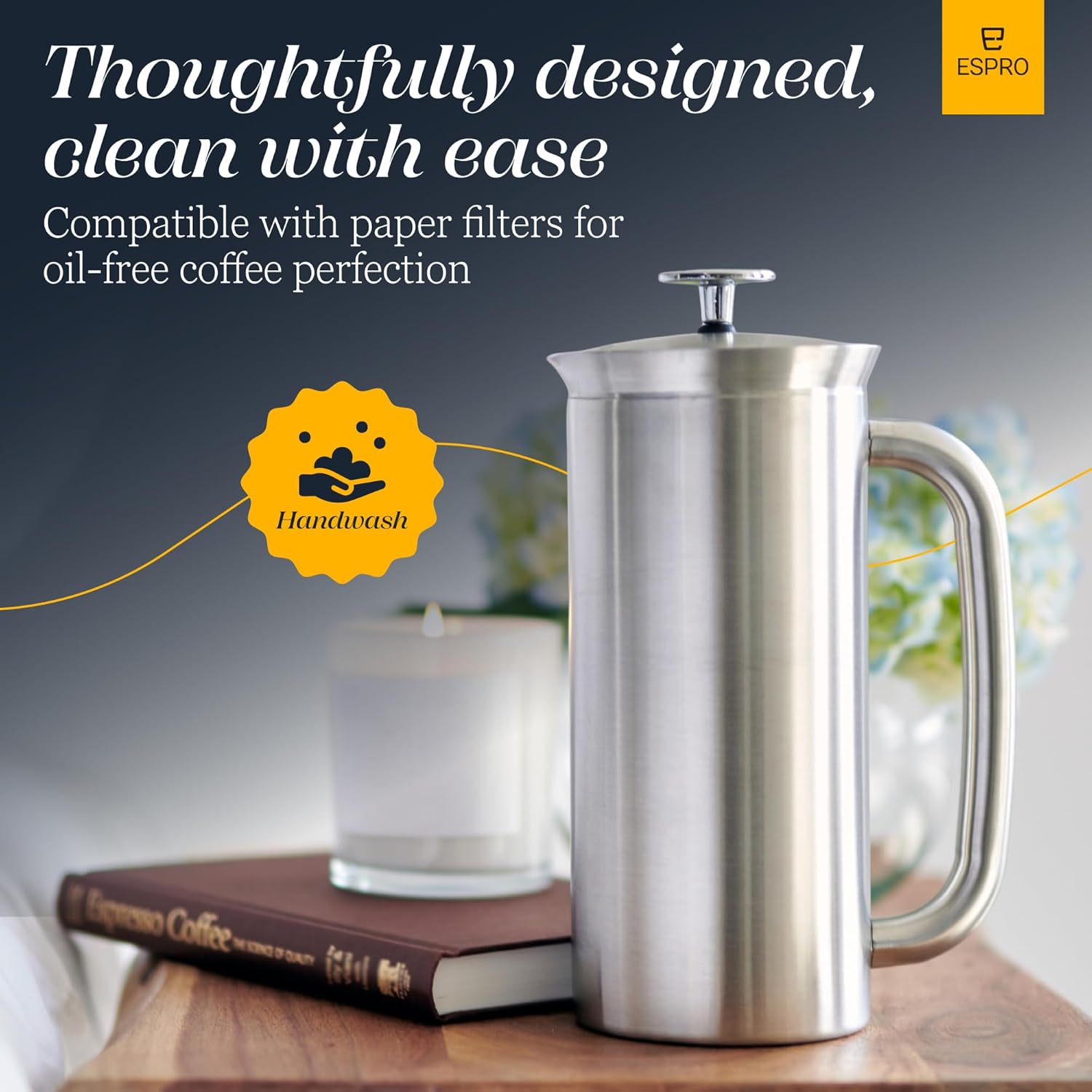 IDEAL FOR GIFTING: ESPRO is the ultimate French press, crafted with stainless steel and featuring a double filter for the perfect coffee experience. It’s a gift that will impress any coffee enthusiast on any occasion.