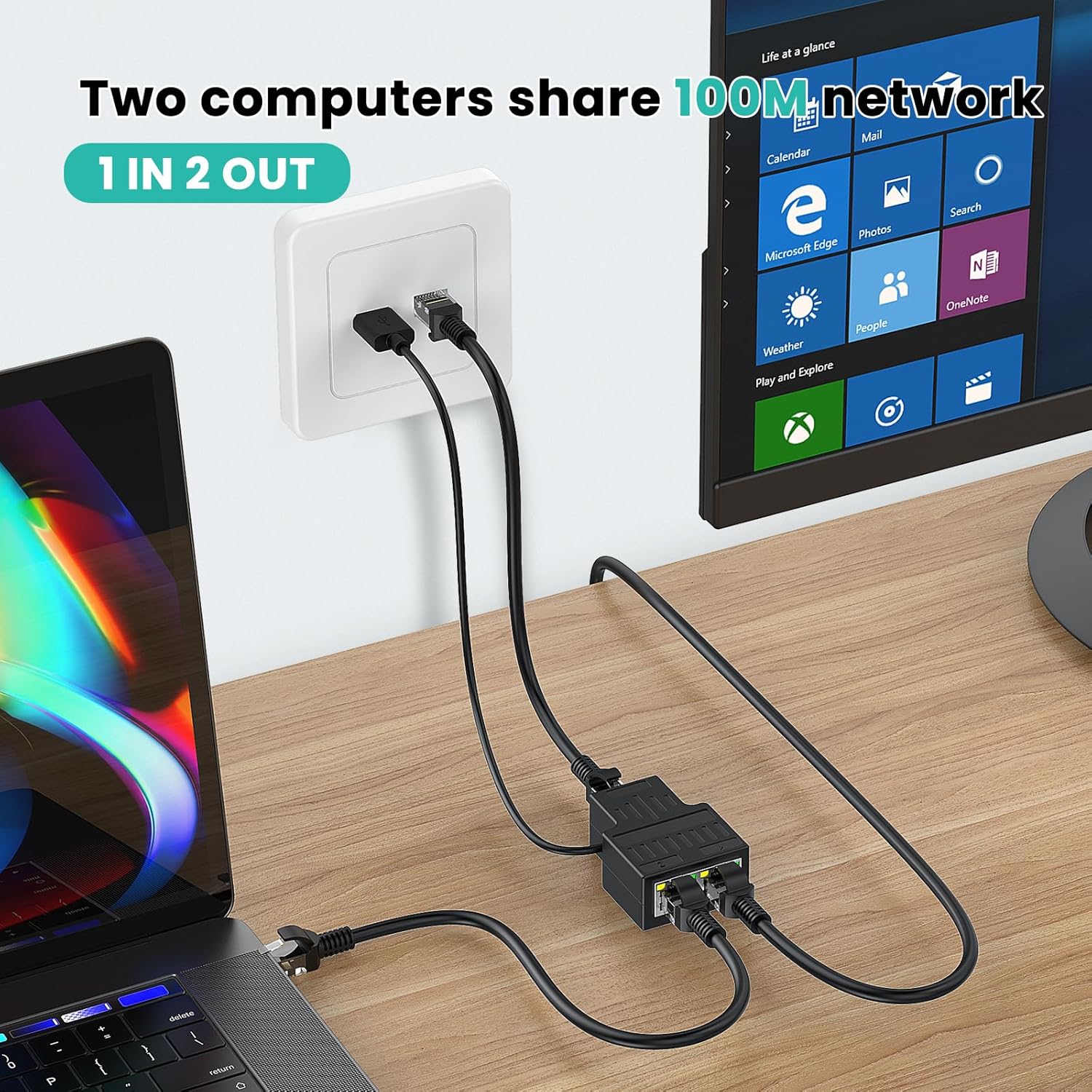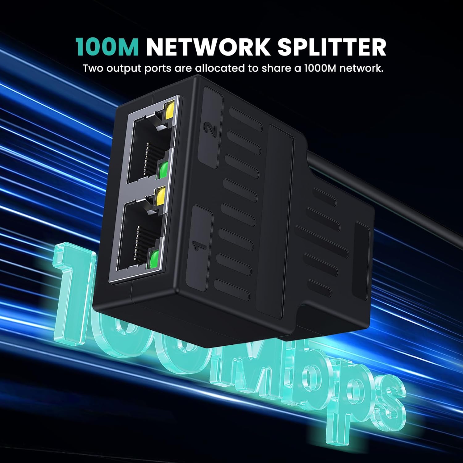 Ethernet Splitter 1 in 2 Out High Speed 100Mbps, Ethernet Switch 2 Port RJ45 LAN Switch Network Splitter