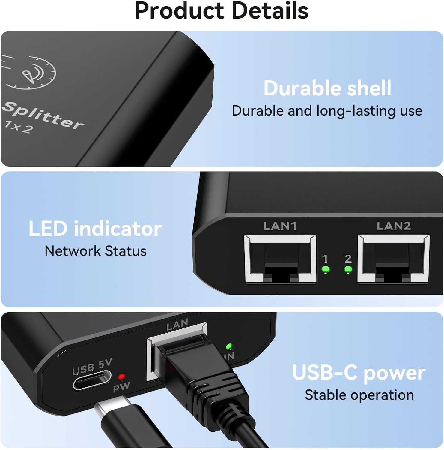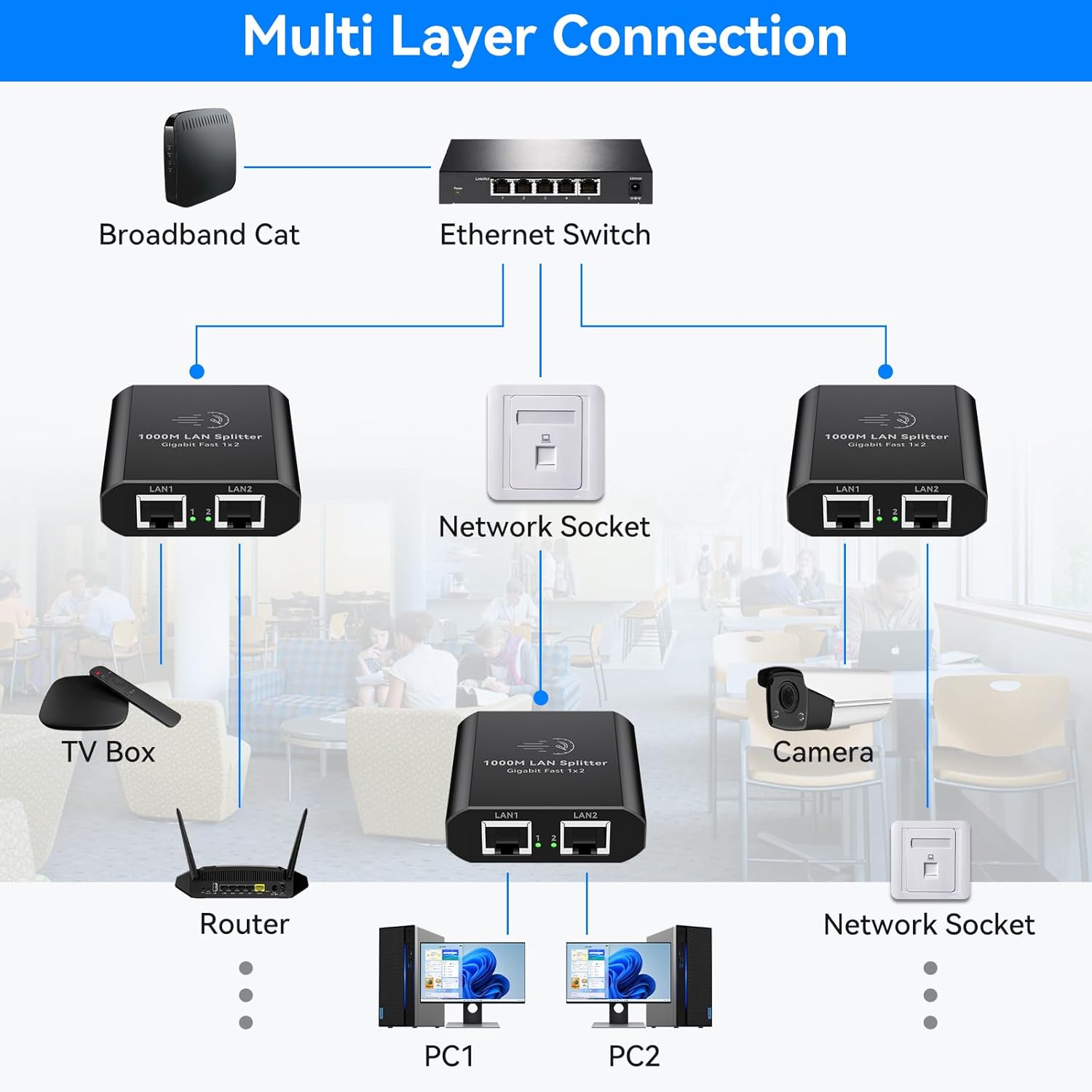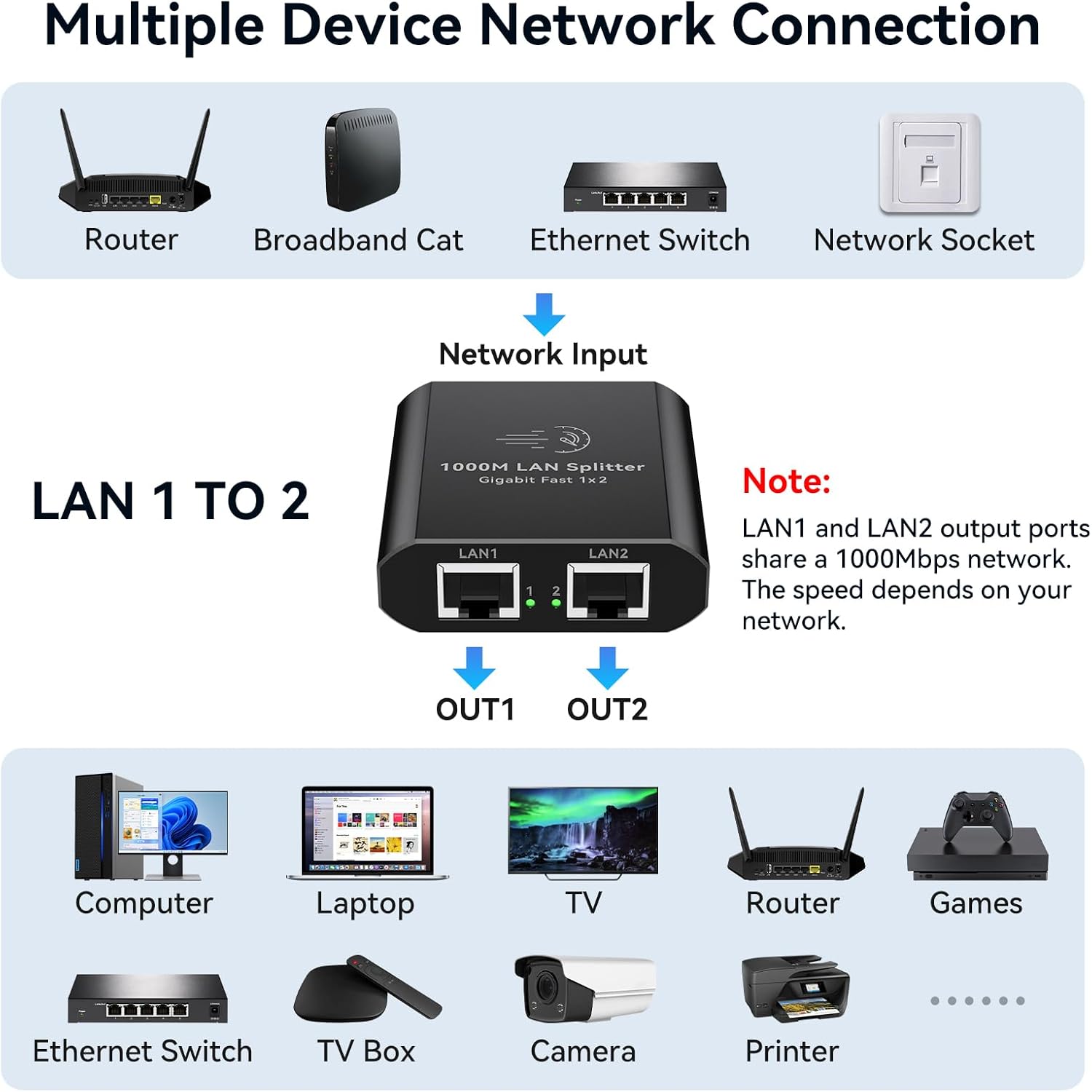 【Aftermarket Service】Ethernet Splitter supports various network devices with high compatibility. Within 24 months after purchase, if you encounter any problems during use, please contact us. Our professional after-sales service team will handle it within 24 hours. Provide technical support and new replacement service as well as refund service.