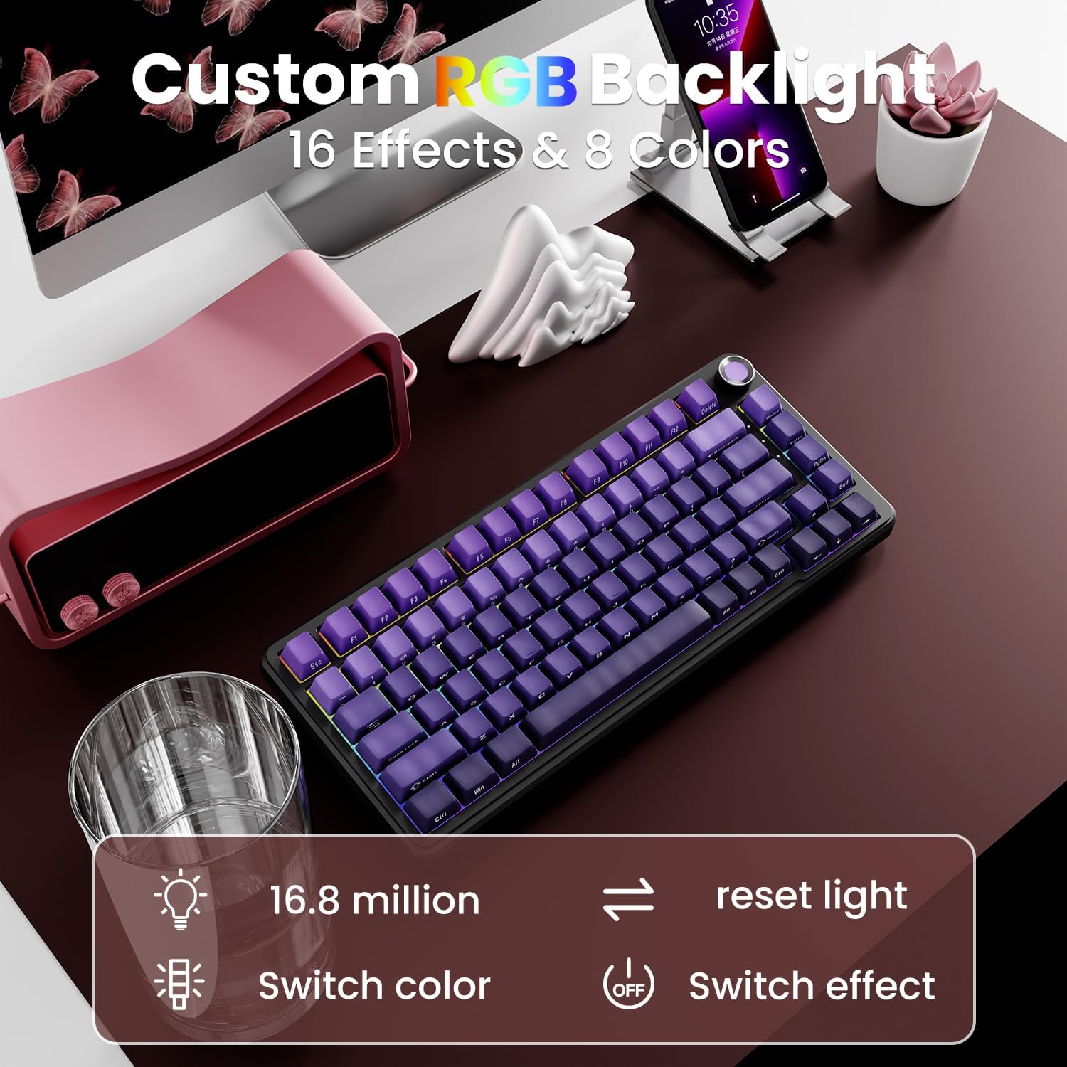 EWEADN GS75 Wireless Mechanical Keyboard ASMR, 75% Gaming Keyboard Gasket Hot Swappable Custom Keyboards with RGB, Knob, PBT Keycaps BT5.0/2.4G/USB-C Creamy Keyboards Purple