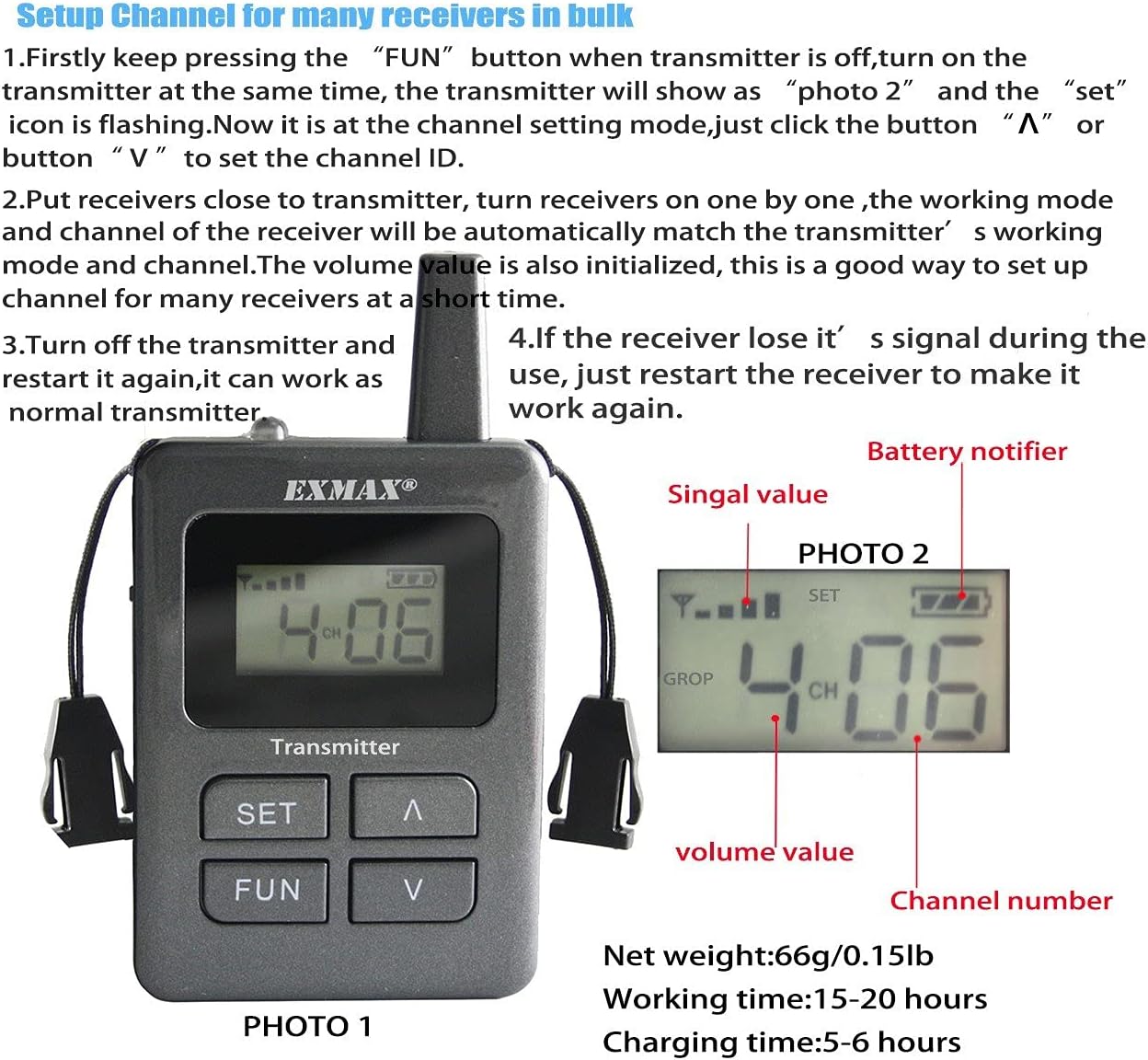 ✤【WORRY-FREE AFTER-SALES】EXMAX offers 2-year warranty. We are full of confidence in the quality,We protect your purchase with an 24-month replacement warranty, 100% satisfaction assured and lifetime customer support. If you have any question with our wireless tour guide equipment, please click Sold by “EXMAX” and “Ask a question”,then leave a message to us. Your problems and suggestions is the key for us to improve.Thank you for choosing EXMAX products! EXMAX provide 24/7 online services.