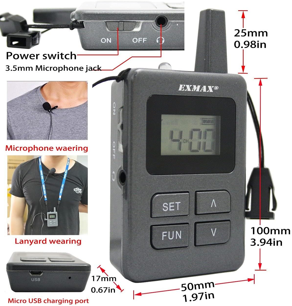 EXMAX ELGT-470 UHF Wireless Whisper Acoustic Digital Voice Transmission Tour Guide System