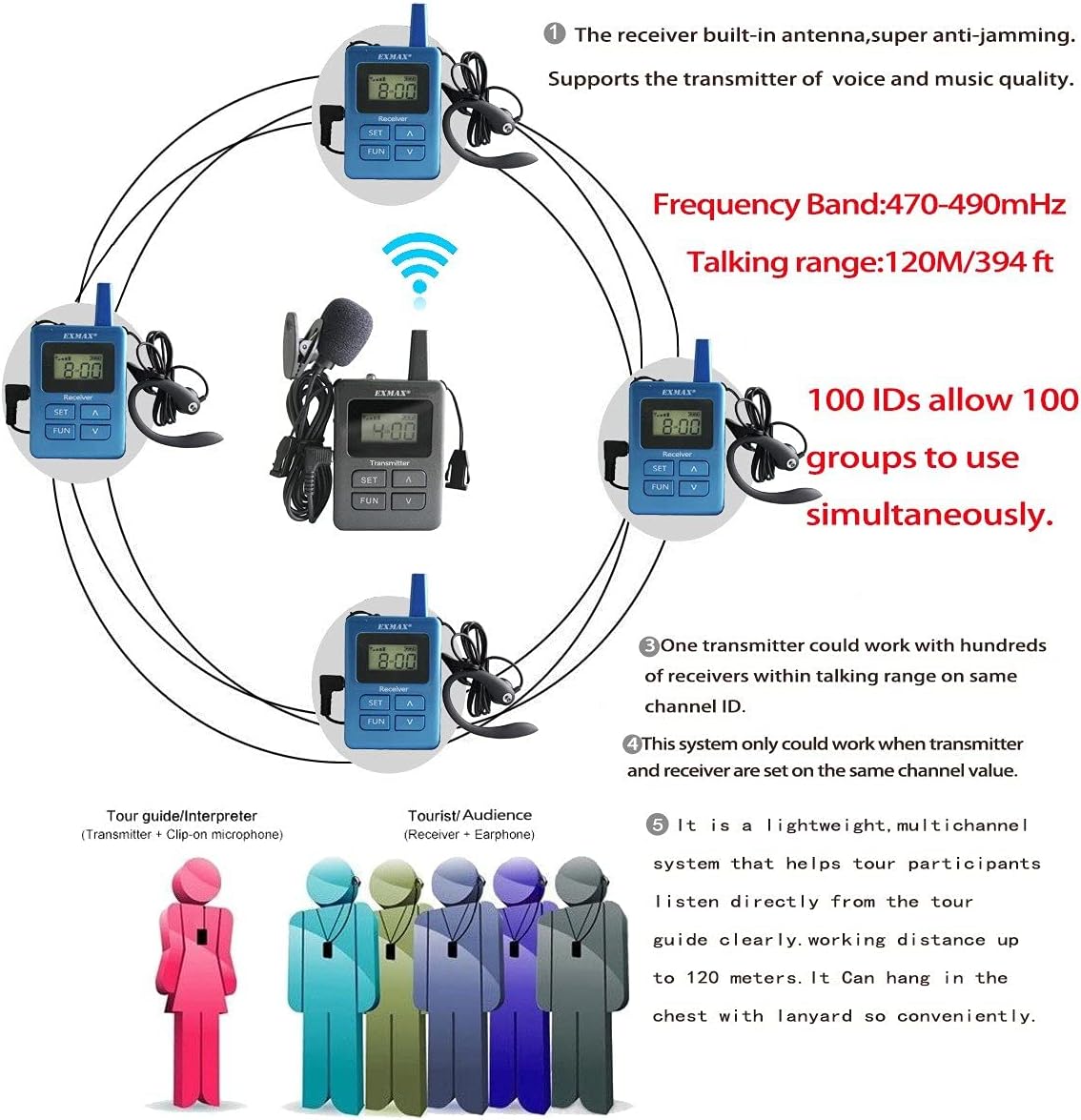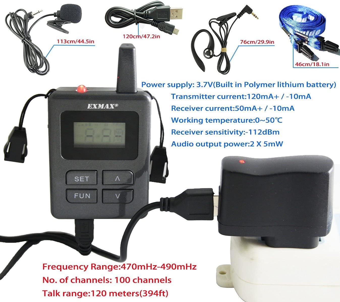 ✤【WIDELY APPLICABLE】EXMAX ELGT-470 Wireless Voice Transmission System Could be used for Whisper Interpretation, One-way Audio Guide Equipment, City or Bus Tour Guide ,Social Distancing Solutions, Assistive Listening, Training and Small Tours in Manufacturing Plant, Interpreter Translation Service Equipment for Church,Silent Commentary. EXMAX ELGT-470 Tour Guide System is a Discreet Alternative to a Loudspeaker System Ensuring Only Your Group Can Hear You.No More Yelling for People to Hear.