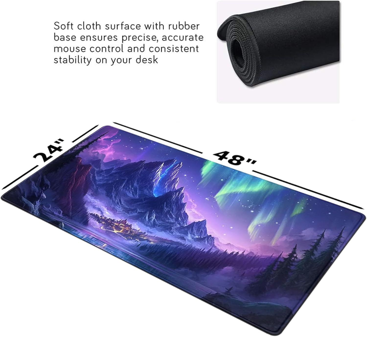 Massive Desk Coverage: At 48×24 inches, this oversized mouse pad offers ample space for your keyboard, mouse, monitor, and other accessories, turning your entire desk into an organized and functional workspace