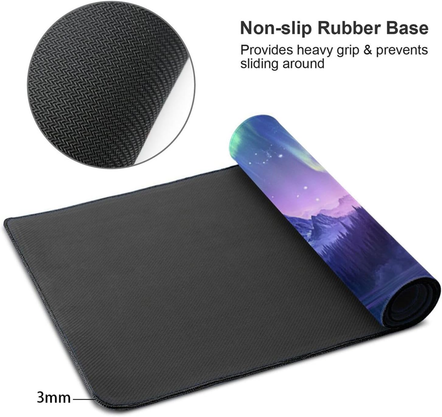 Anti-Slip Rubber Base: The durable non-slip rubber backing ensures the mouse pad stays firmly in place, even during intense gaming or extended work sessions